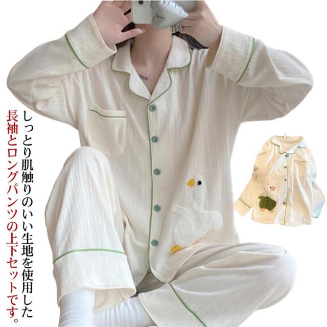 秋 パジャマ 長袖 長ズボ 敬老の日 レディース ウエストゴム 部屋着 春 セットアップ 可愛い 通気性 上下セット 寝間着 夏 無地 前開きパジャマ 冬 前開き 対策 柔らかい 暖かい 肌触りがいい 寝巻き 記念日 プレゼント ルームウエア