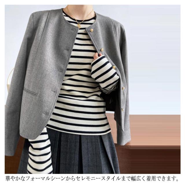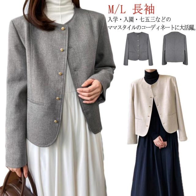 ジャケット 長袖 ノーカラー ツイードジャケット ツイードコートフォーマル 七五三 結婚式 ショット丈 服装 卒業式 レディース 白 グレー お宮参り 入学式 ライトアウター 母親 20代 30代 40代 入園式