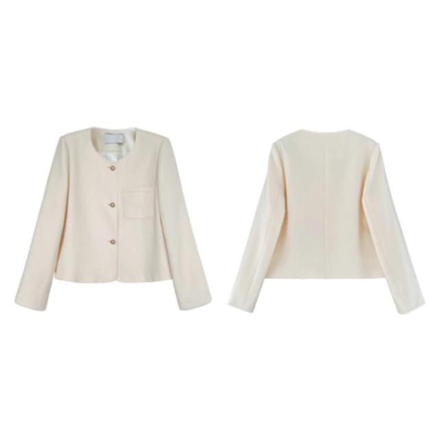 | フェミニンな仕立てのノーカラージャケット 入学・入園・七五三などのママスタイルのコーディネートに大活躍。 華やかなフォーマルシーンからセレモニースタイルまで幅広く着用できます。 いつもの服装をほんの少しだけ華やかなものへ導きます。 華やかながらもすっきりとした印象で、普段使いとしても活躍します。 | |