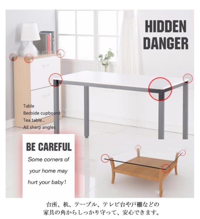 | クッション性が高くて、万が一子供がぶつかっても全然平気です。 台所、机、テーブル、テレビ台や戸棚などの家具の角からしっかり守って、安心できます。 透明で無毒のPVC素材、実用的で無臭、柔らかく。 透明なので家具の材質感を損なわず角の衝突を和らげてくれます。 目立たないデザインでお子さんの興味も引かないので剥がされるのを心配もありません。 両面テープを使って、水洗いできます、取り付けやすく、触り心地も良く、両面テープ貼り付きで便利です。 | |