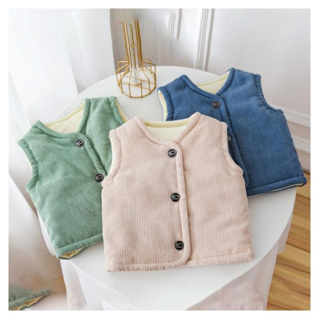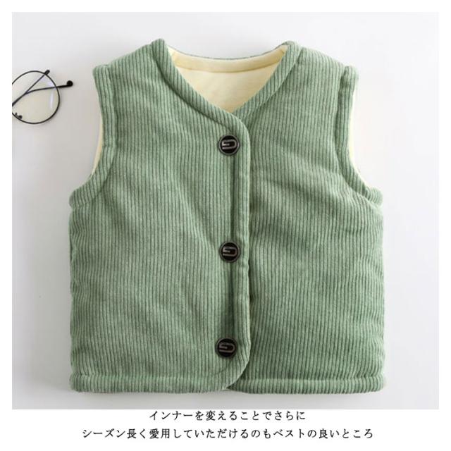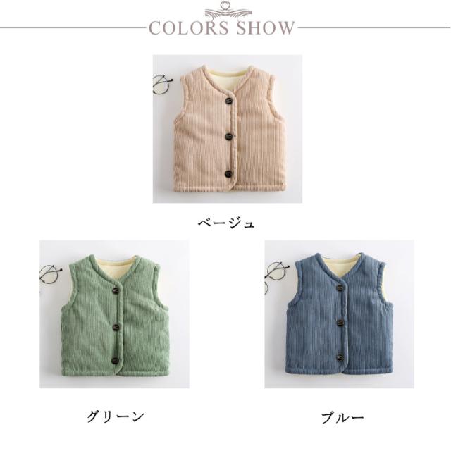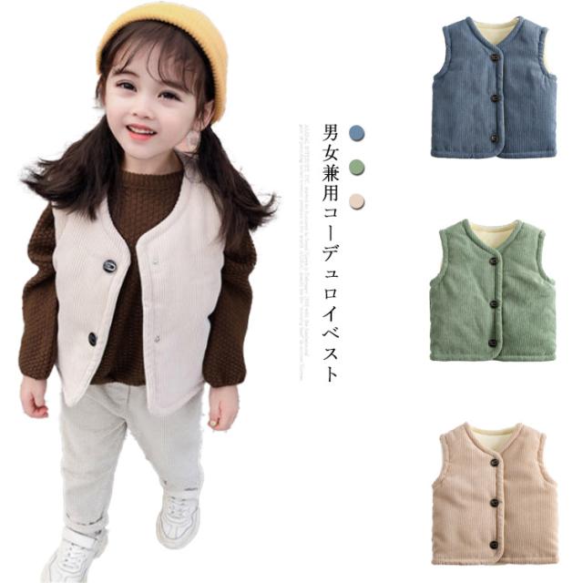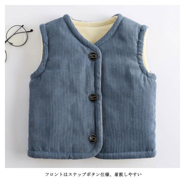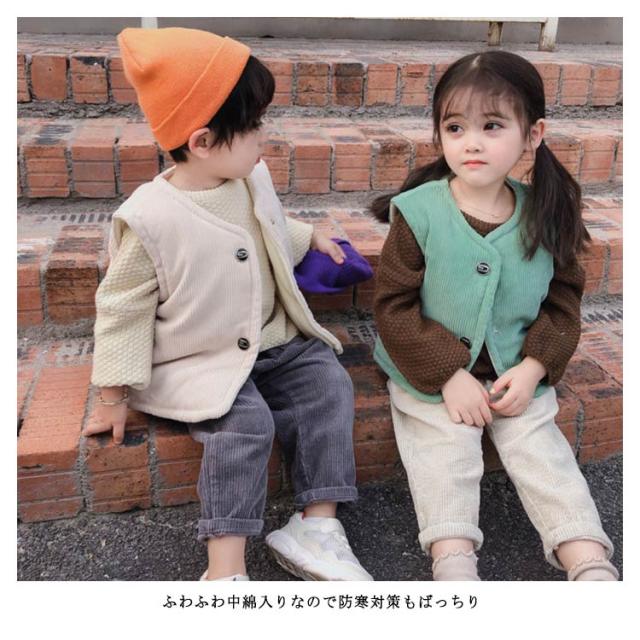 ベスト キッズ コーデュロイベスト 中綿 ノースリーブ アウター 厚手 防寒 女の子 男の子 子供服 ベビー服 子ども ジャケット トップス 羽織り おしゃれ 無地 襟無し 秋 冬 暖かい カジュアル おしゃれ かわいい お出かけ 通園 通学