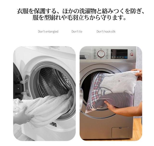 | ランドリーネットとしてだけでなく、衣類収納、トラベルポーチや野菜の保存、おもちゃの収納などとしてもお使いいただけます。 衣服を保護する、ほかの洗濯物と絡みつくを防ぎ、服を型崩れや毛羽立ちから守ります。 ほこり・汚れの付着をガードしてくれる。 色落ち・色移りを防いでくれる。 分類するのも簡単です。 ネットの目は細かいので、ごみなどが入りにくい。洗剤や柔軟剤は透してくれるので柔軟剤の効果が繊維の中まで届ける。しっかりと汚れも落ち、汗など水溶性の汚れを強力に落とします。 | |