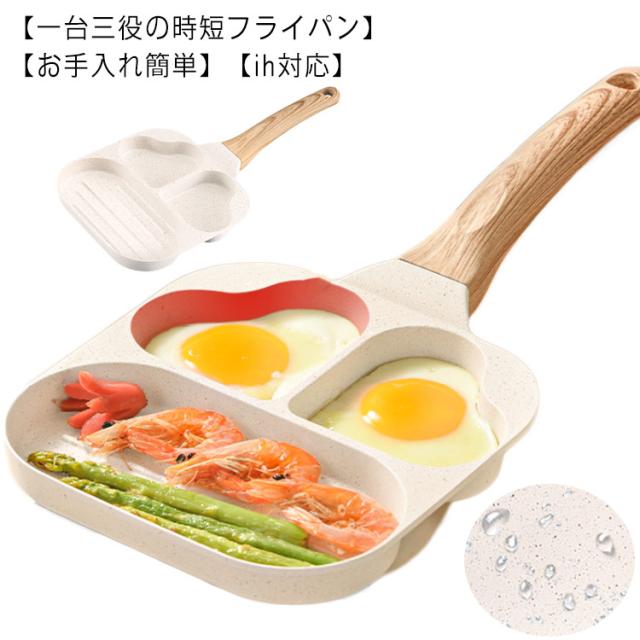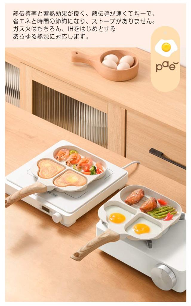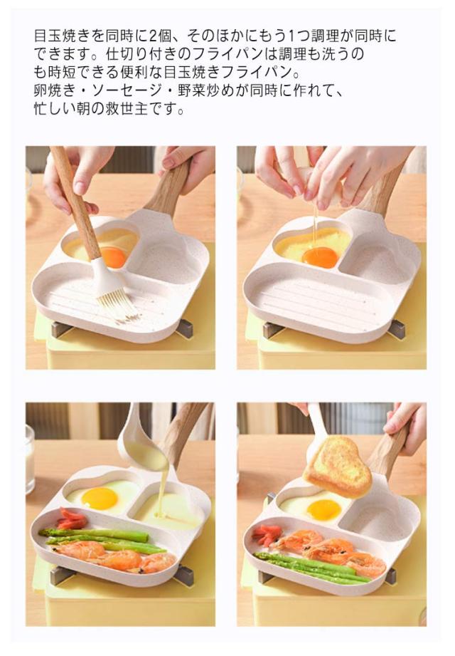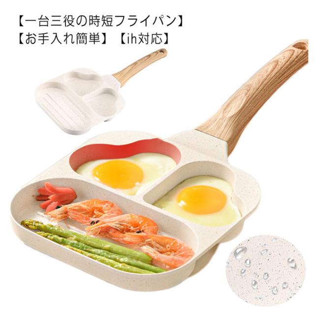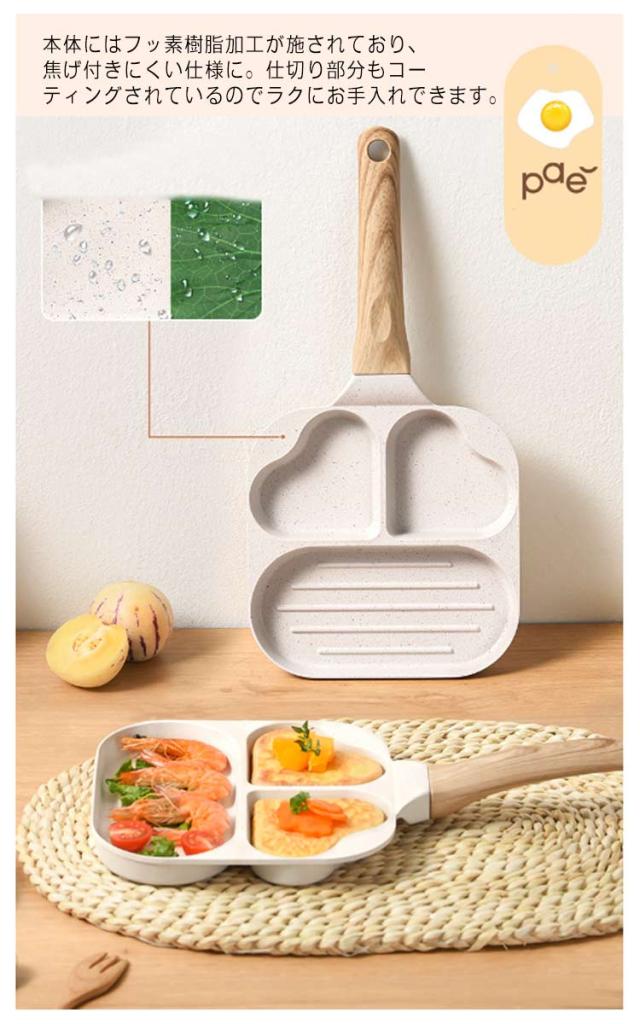 仕切り 作り フライパン IH対応 ガス お弁当 3つ 型 子供 型 丸い 朝食 IH お弁当 片手鍋 電磁調理器 キャラ弁 ホットケーキ 調理 料理 フライパン こども 親子 クッキング IH対応