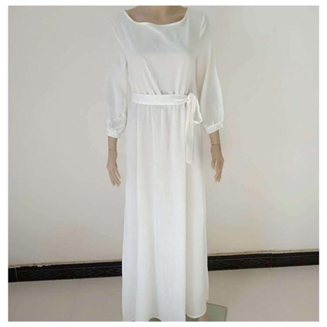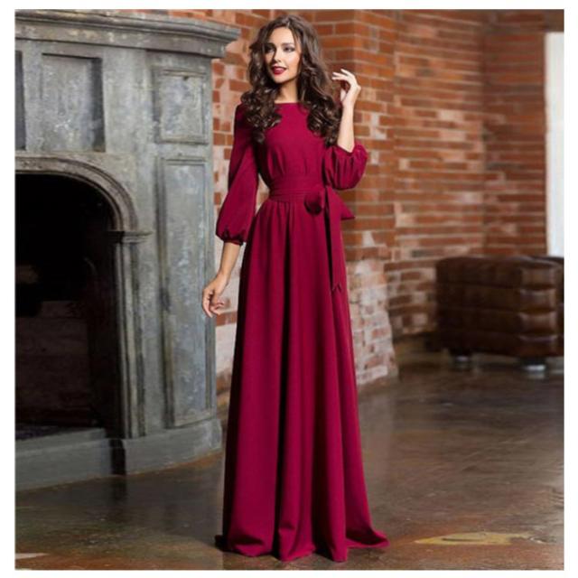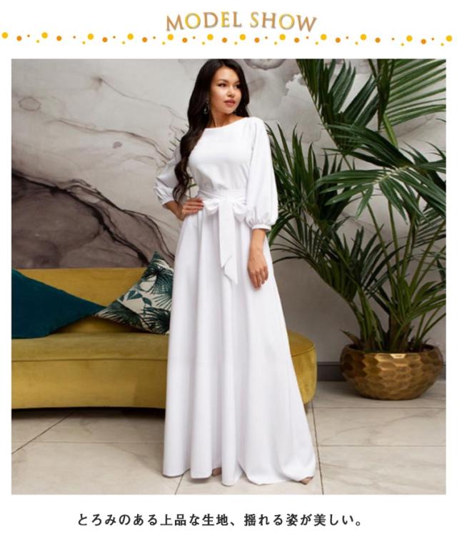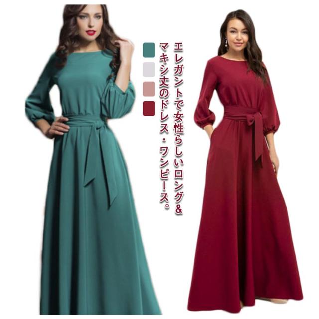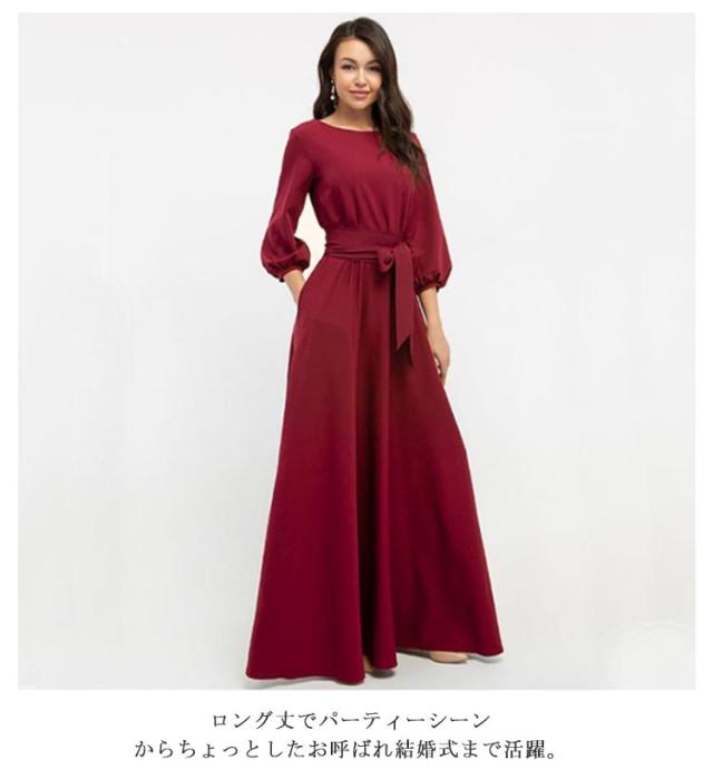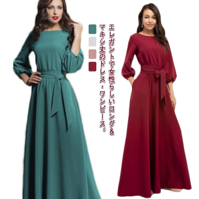 7分袖 ワンピースドレス フレア 春夏 シフォン リボン ボートネック ロングワンピース 送料無料 ワンピース パーティードレス 結婚式 二次会 マキシ丈 30代 40代 50代 無地 マキシワンピース