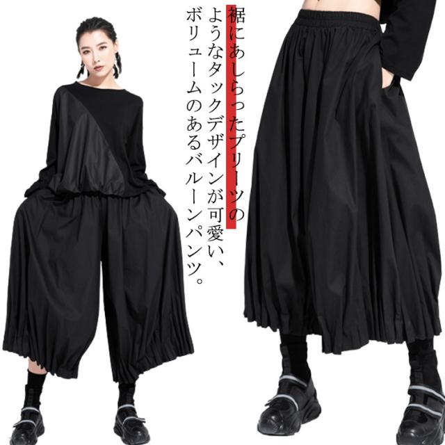 バルーンパンツ タックパンツ コクーンパンツ パンツ ゆったり 裾タック ロングパンツ 七分丈 袴パンツ ボリューム サーカスパンツ 無地 サルエルパンツ ワイドパンツ レディース 大きいサイズ カジュアル 冬 ウエストゴム ゆるパンツ モード 春 夏 秋 ボトムス