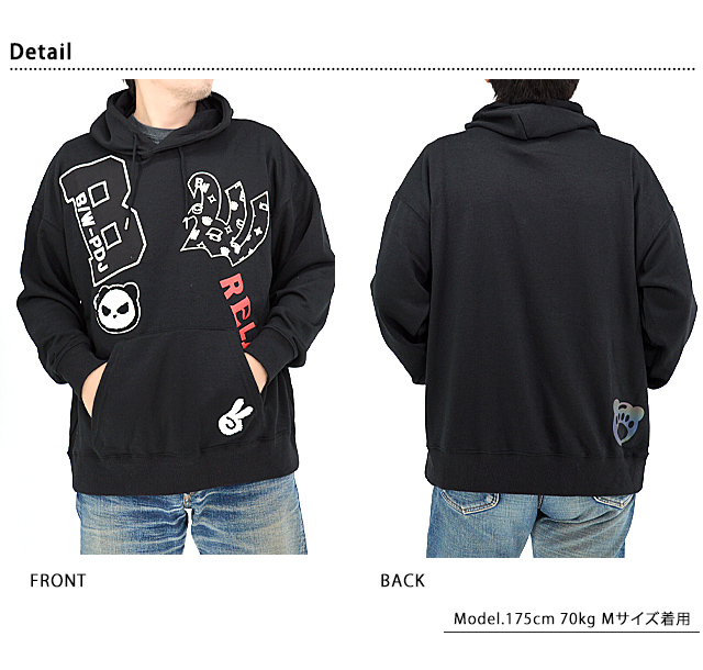 | B/W-PDJ RELAXシリーズ アップリケ風発泡プリントルーズパーカー◆PANDIESTA JAPAN NSK-M14532 | ||||||||||||||||||||