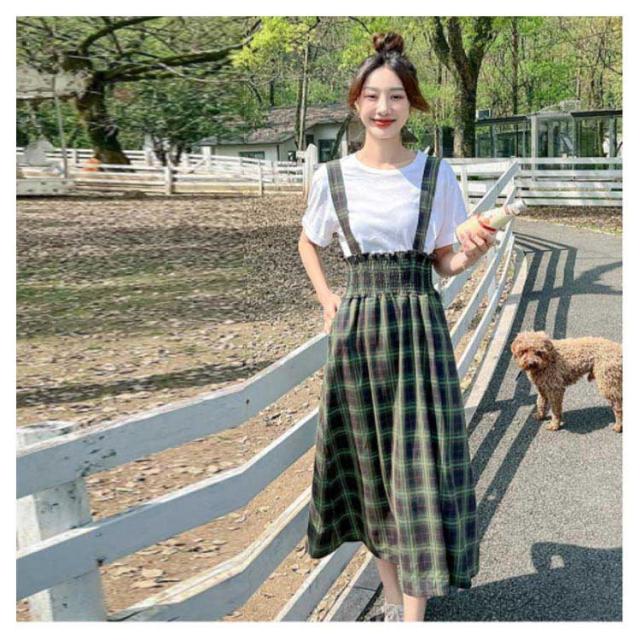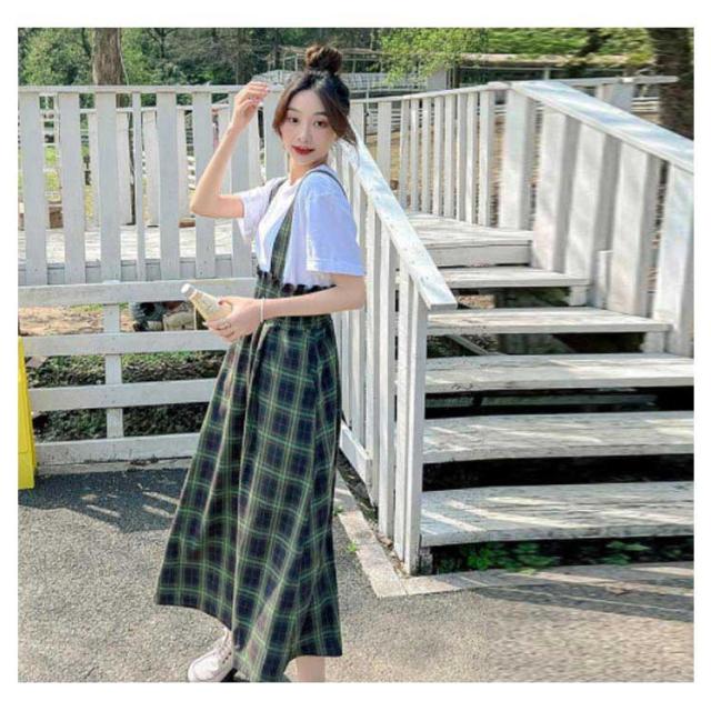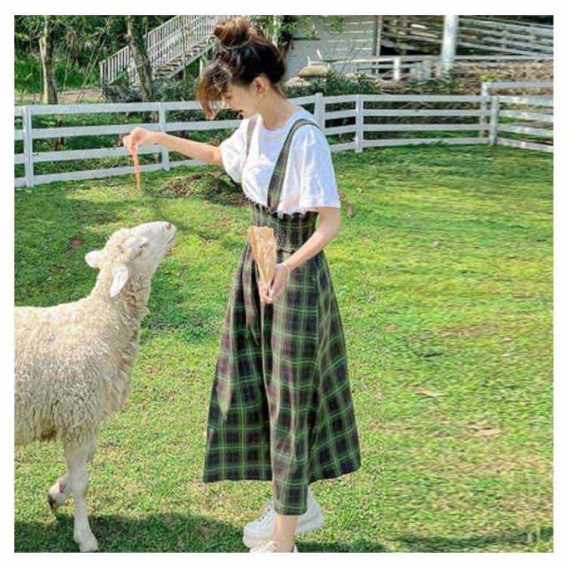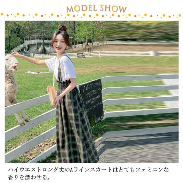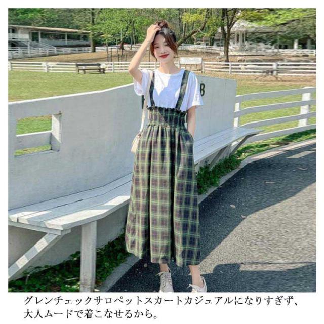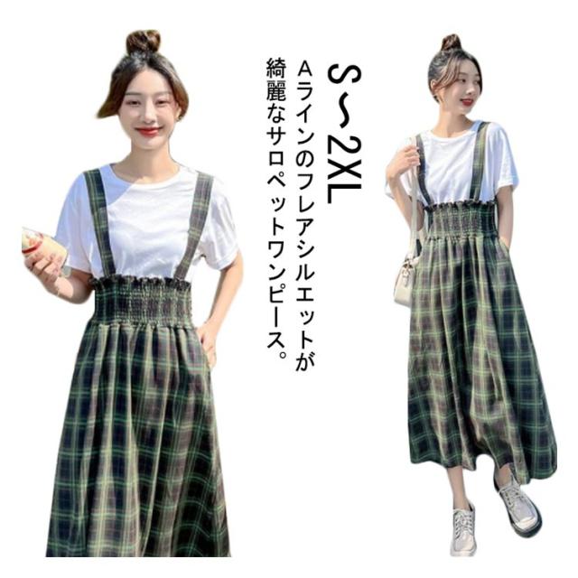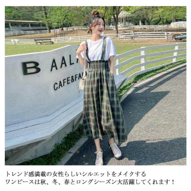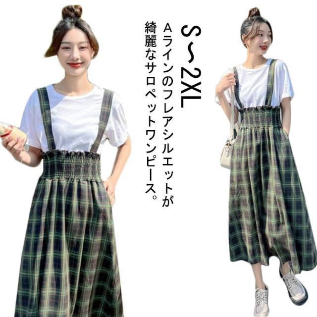 ロング ワンピース キャミワンピース キャミソールドレス ワンピ レディース ジャンパースカート 【送料無料】サロペット スカート レディース オーバーオール フレアスカート ロング丈 チェック
