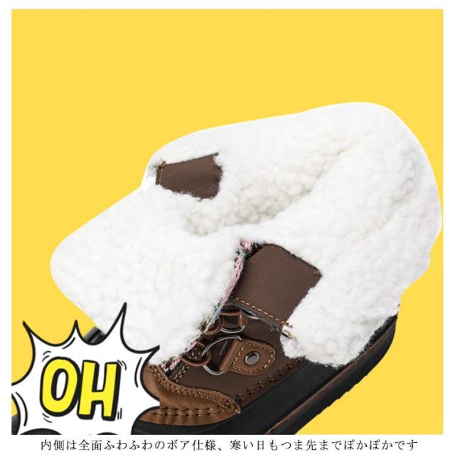 | 冬に大活躍してくれる機能的な防寒ブーツです 着脱スムーズなゴム靴紐、お子様ご自身で履く場合でもいいです 内側は全面ふわふわのボア仕様、寒い日もつま先までぽかぽかです アウトソールは凸凹形状で、悪路面でもしっかりとグリップしてくれる。 スキーや雪遊びなどに普段使いにおすすめです。 | |