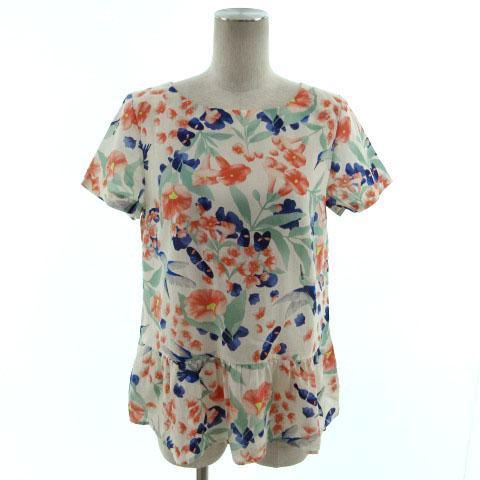 【中古】ポール&ジョー シスター PAUL&JOE SISTER カットソー 半袖 裾フレア 鳥 花柄 ベージュ ピンク系 青 緑 黄 1