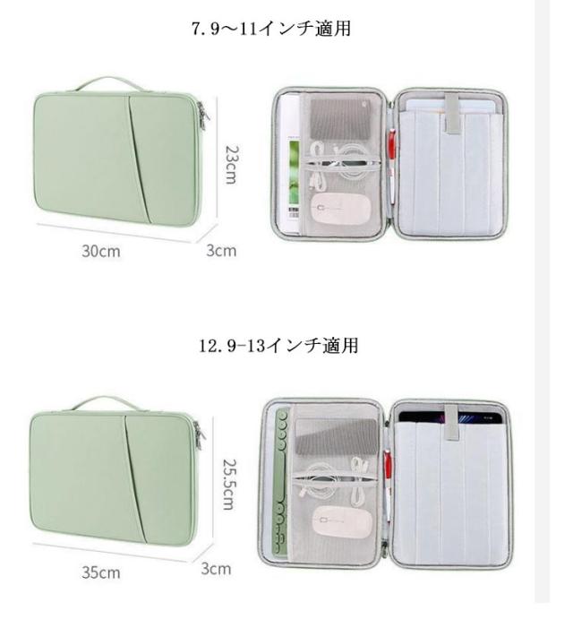 ノートパソコン iPadケース タブレットケース 12.9-13インチ 防水 PCバッグ パソコンバッグ 軽量 おしゃれ 持ち運び 12.9-13インチ 大容量 ケース 保護 インナーケース オフィス リモート 会議 出張 7.9〜11インチ
