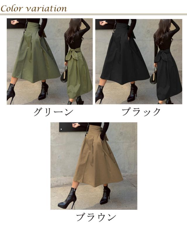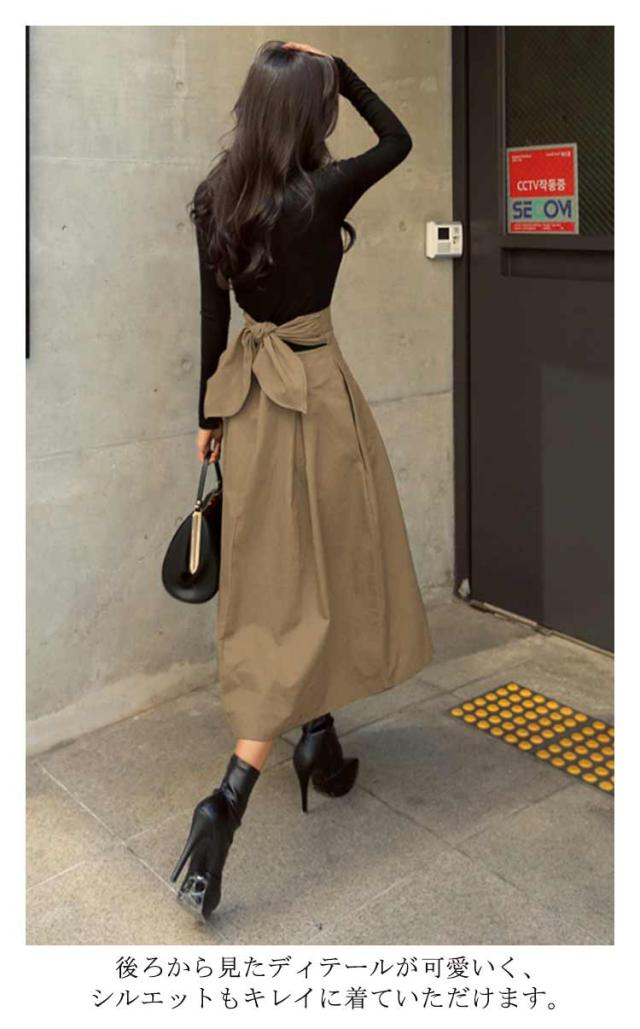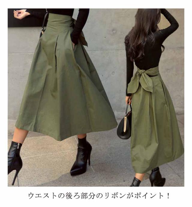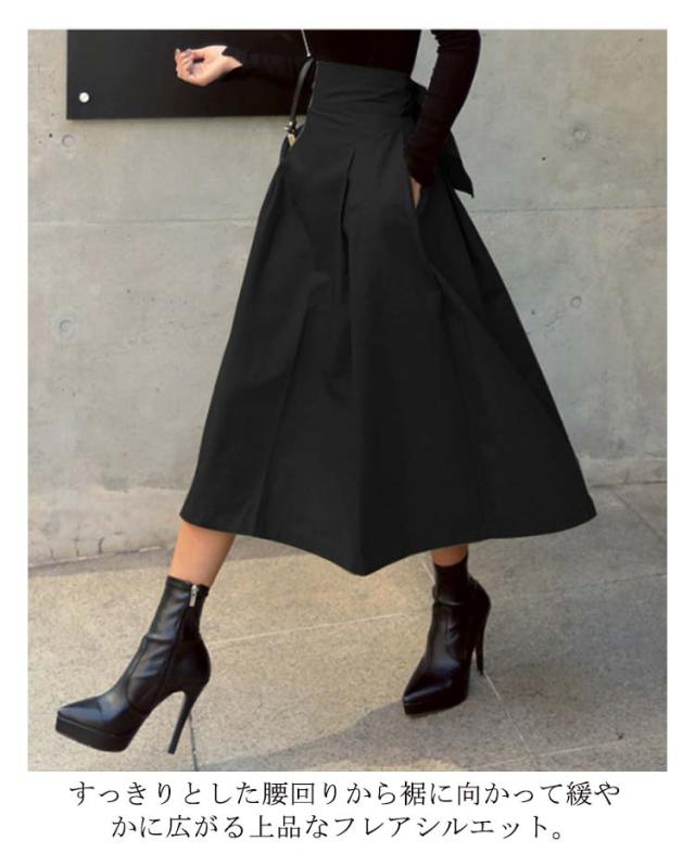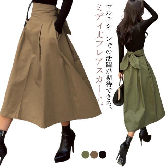 バックリボン スカート フレアスカート カジュアル 送料無料 ミディアム ロングスカート レディース ミモレ丈 ハイウエストスカート ボトムス きれいめ 通勤 30代 足長効果 大人 可愛い Aライン 通学 きれいめ オフィス 春服 春夏秋 大人 女性 20代 体型カバー