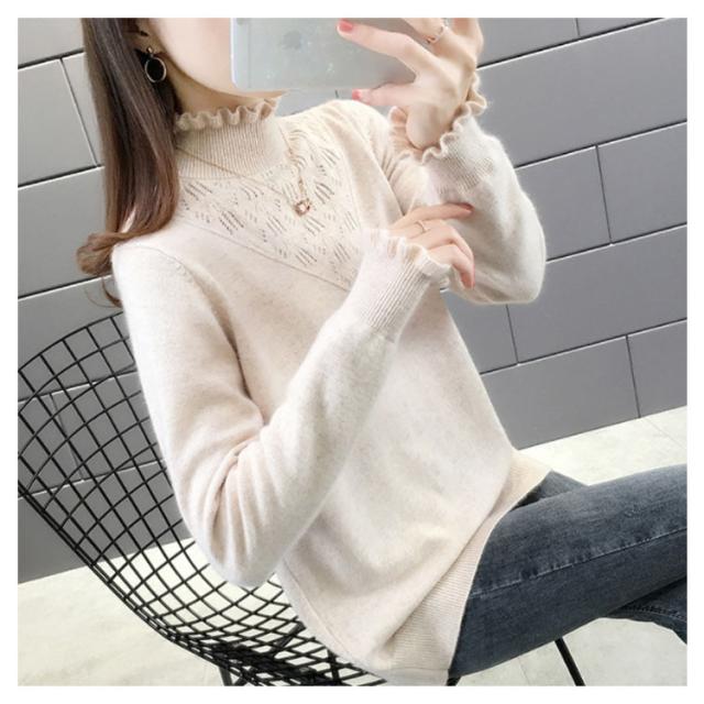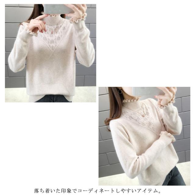 ニットセーター カットソー レディース トップス 長袖 ニット ショート丈 プルオーバー ハーフタートルネック ビッグシルエット 秋服 冬服 フェミニン 無地 着痩せ 通勤 大人上品 きれいめ ゆったり