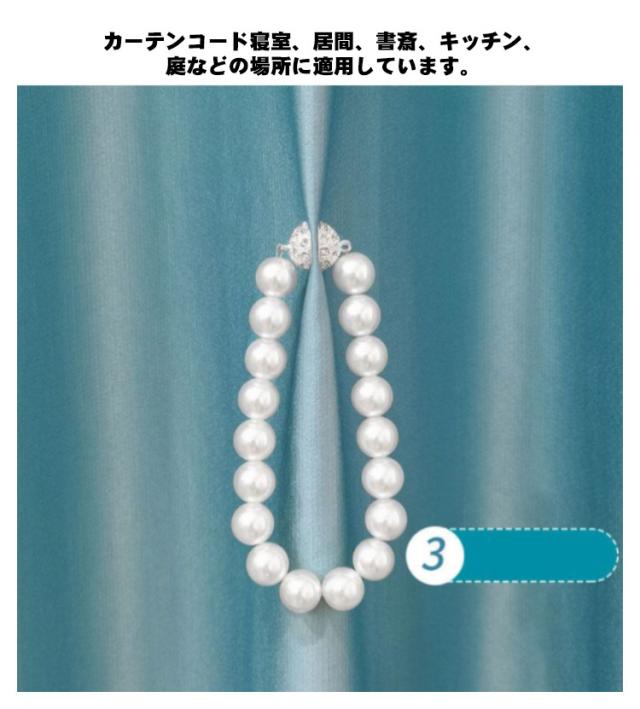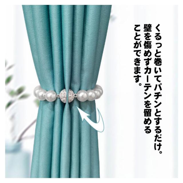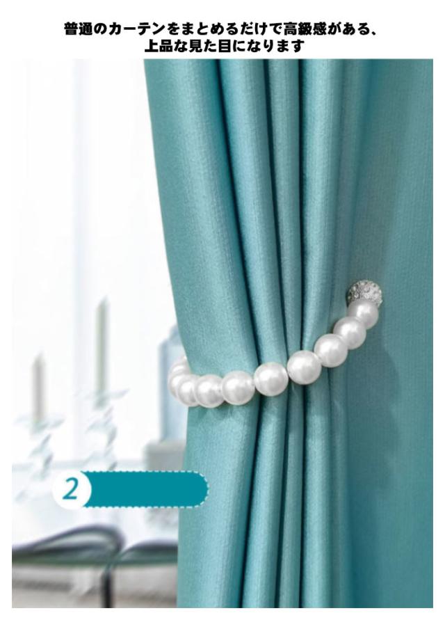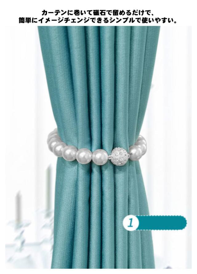 | まるで、真珠のネックレスのようなカーテン用のタッセルです。 カーテンに巻いて磁石で留めるだけで、簡単にイメージチェンジできるシンプルで使いやすい。 普通のカーテンをまとめるだけで高級感がある、上品な見た目になります。 くるっと巻いてパチンとするだけ。壁を傷めずカーテンを留めることができます。 フェイクパール&ラインストーンの上品なデザイン。カラバリ豊富な全5カラーをご用意☆ カーテンコード寝室、居間、書斎、キッチン、庭などの場所に適用しています。 | |