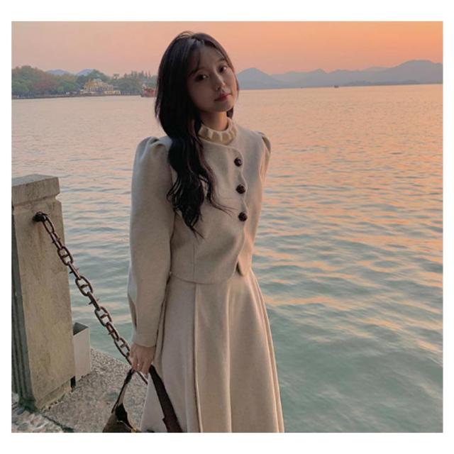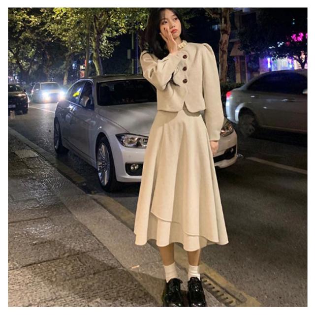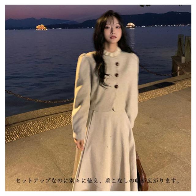 スーツ 2点セット ジャケット スカート 冬 厚手 セットアップ レディース S−XL コート ハイウェスト 制服 ビジネス フォーマル 秋 通勤 通学 入学式 卒業式 上下セット 無地 トップス ロング ミモレ丈