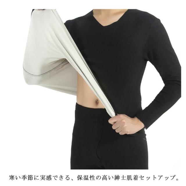 肌着 メンズ 保温 インナー メンズ 肌着 上下セット Vネック 長袖 アンダーウェア トップス Tシャツ インナーパンツ 紳士 送料無料 ストレッチ 冬 もこもこ 暖ヒート 暖かい 下着 防寒 あったか