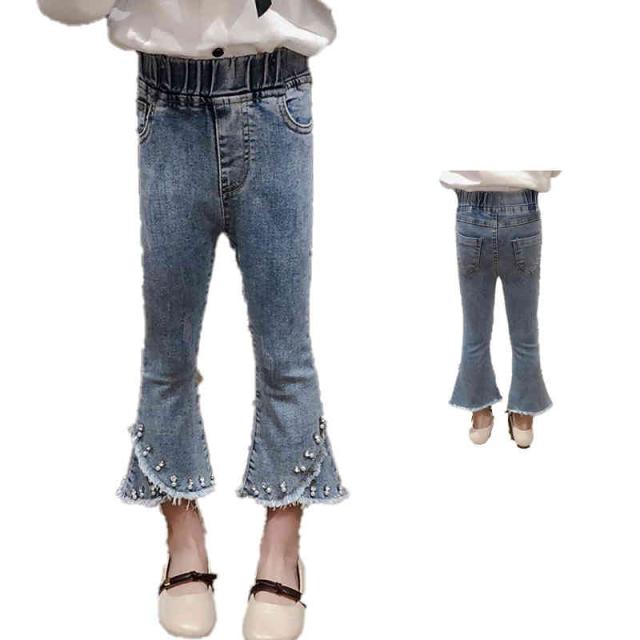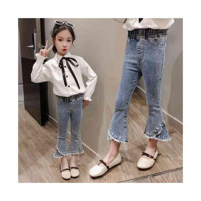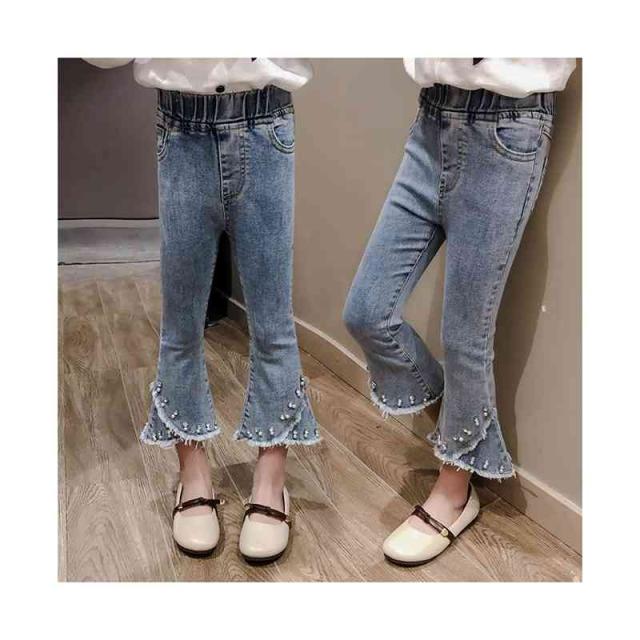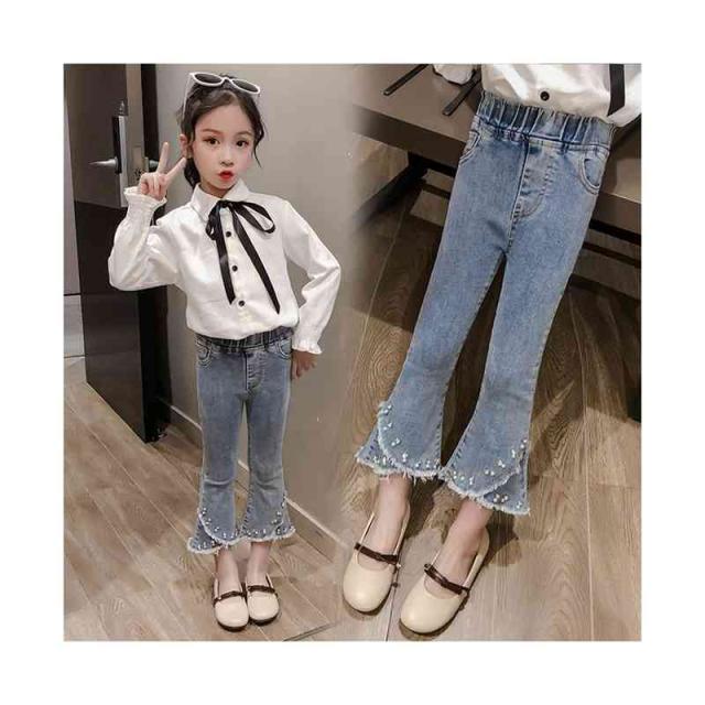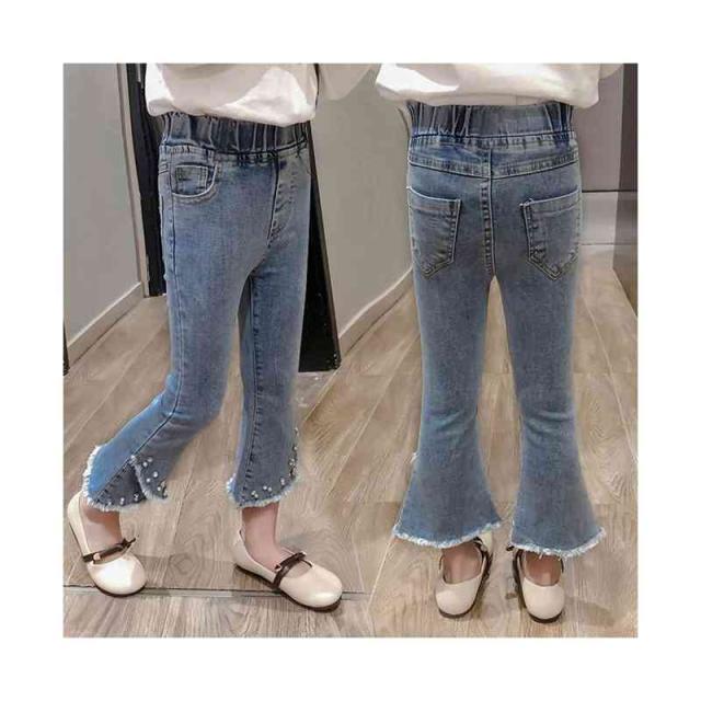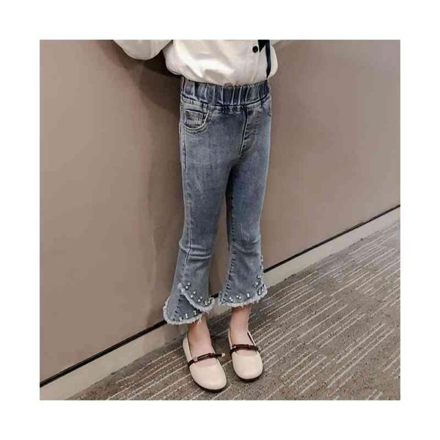 子供パンツ ウエストゴム キッズ 女の子 フリルパンツ ロングパンツ ボトムス ロング丈 デニムパンツ ロングデニムパンツ フリルロングパンツ フレアパンツ おでかけ 無地 シンプル カジュアル ロングデニムパンツ