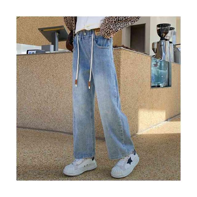 デニムロングパンツ ストレートパンツ 春秋 ズボン キッズ ワイドパンツ ジーンズ 女の子 デニムパンツ デニム ロングパンツ 女の子 ボトムス かわいい お洒落 長ズボン ウエスト紐 無地 シンプル カジュアル 子供服 おしゃれ おでかけ 送料無料