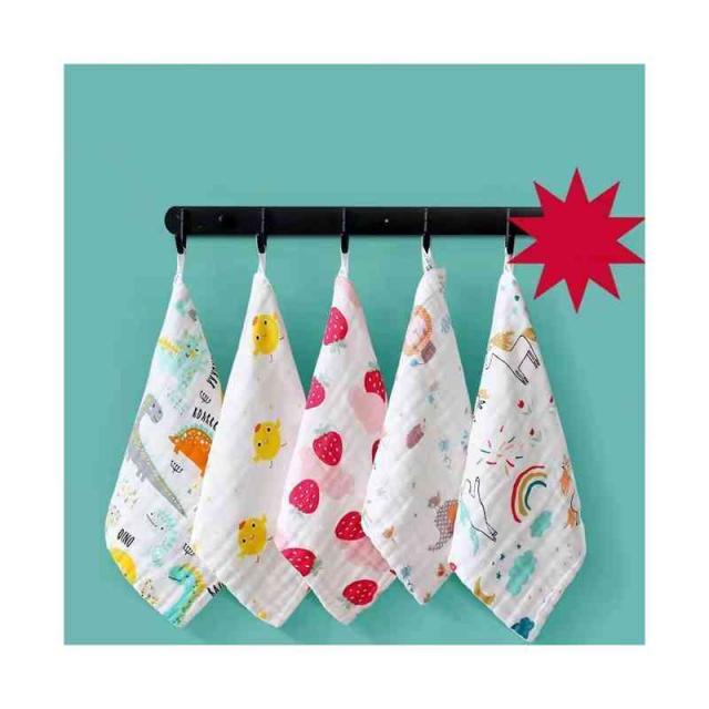 ループ付 手拭き ハンドタオル 5柄セット 約30×30cm ループ付 薄手 ガーゼタオル 吸水 速乾 ベビー 保育園 幼稚園 ギフト タオル