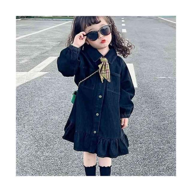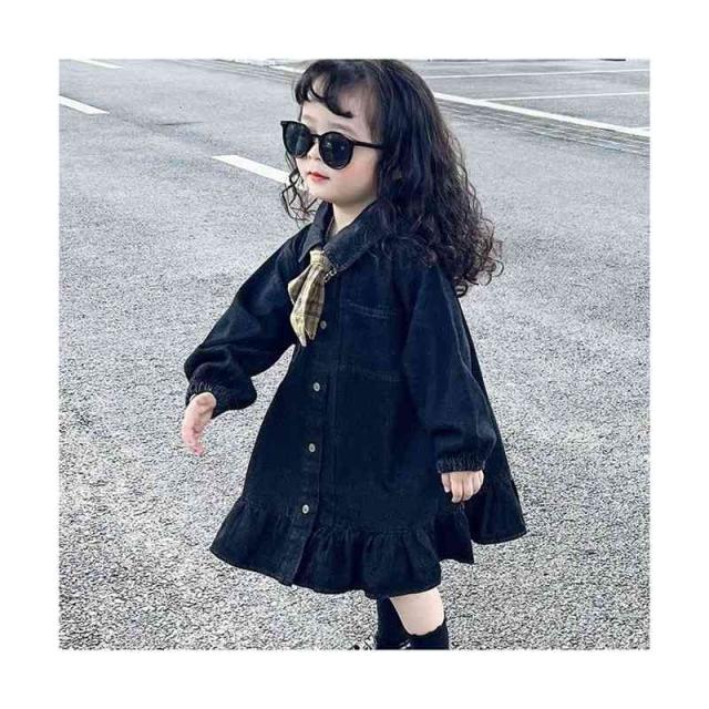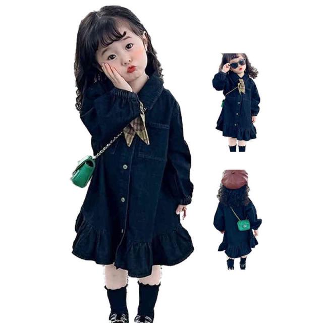 キッズ 春秋 リボンワンピース ロングワンピース デニム デニムワンピース シンプル 子供ワンピ 女の子 シンプル 送料無料 おしゃれワンピース 無地 子供服 カジュアル おしゃれ 長袖