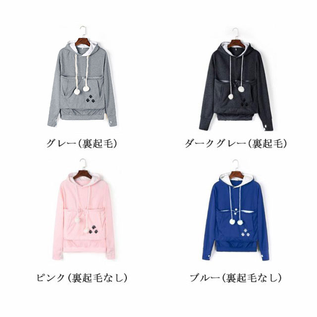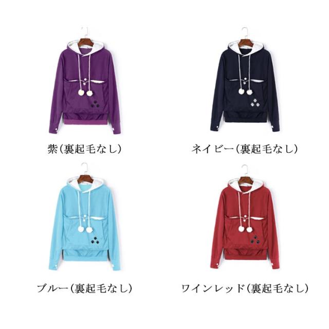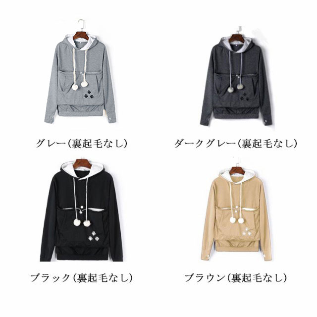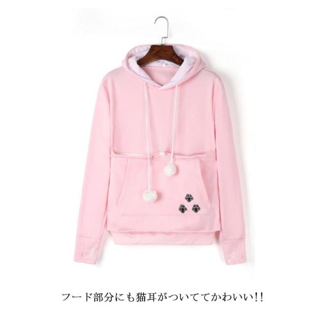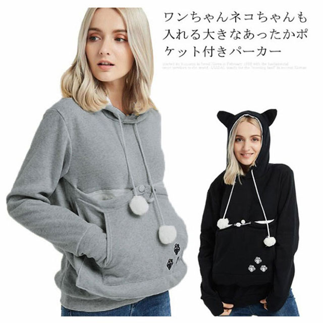 パーカー 猫も入れるパーカー カンガルーポケット 猫 犬 小動物 抱っこ用 抱っこキャリア スリング 猫耳 フード付き 裏起毛 裏フリース トップス プルオーバー レディース メンズ にゃんこパーカー 暖かい