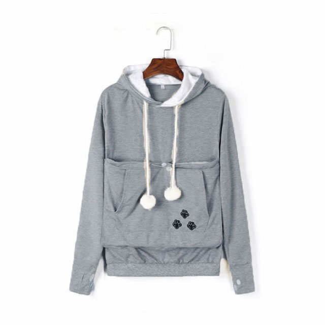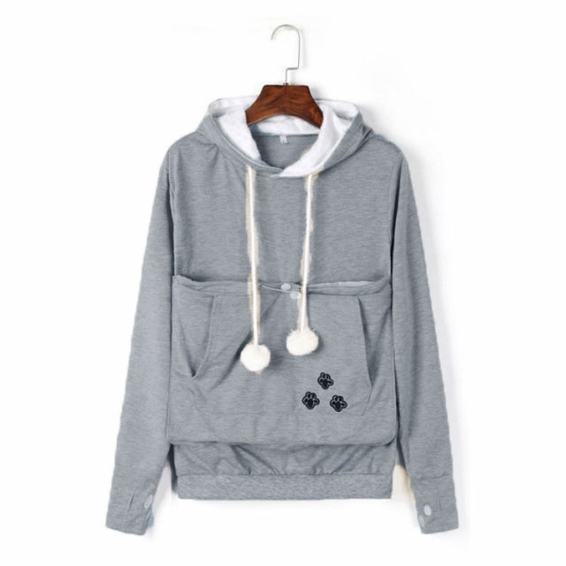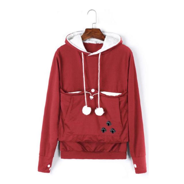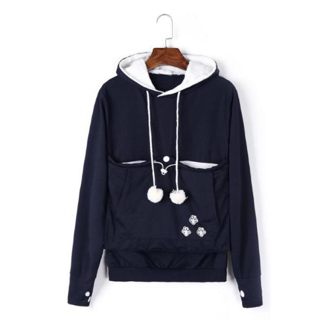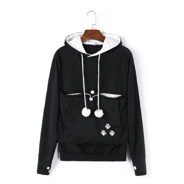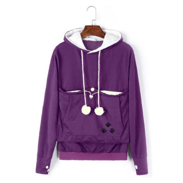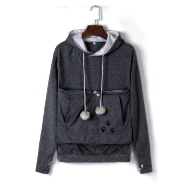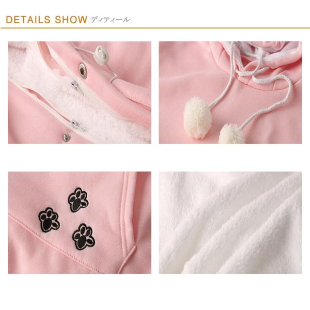 | ワンちゃんネコちゃんも入れる大きなあったかポケット付きパーカー。 入れたまま移動出来るので抱っこ紐やスリング代わりとしても。 裏ボア素材で暖かさ抜群。 猫ちゃんを入れたまま立ち上がることはもちろん出来ますし、ポケットが猫ちゃんの体を支えてくれるので、両手が自由! 子猫から5キロ程度の成猫まで幅広く対応。 ポケットに入ったままボンボンで遊ぶのがたまらにゃい! フード部分にも猫耳がついててかわいい!! 寒くなってきた季節に、愛犬・愛猫といっしょににあたたまる。 | |