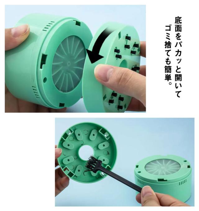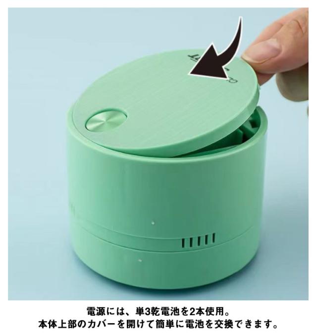 | 机に散らばった消しカスなどを、一気に掃除できる卓上クリーナー。 底面のブラシでゴミを集まる。底面をパカッと開いてゴミ捨ても簡単。 付属のすき間ノズルをセットすると、キーボードの隙間のゴミまで掃除ができます。 電源には、単3乾電池を2本使用。本体上部のカバーを開けて簡単に電池を交換できます。 手のひらサイズなので、置き場所に困りにくいのがうれしいポイントです。 | |