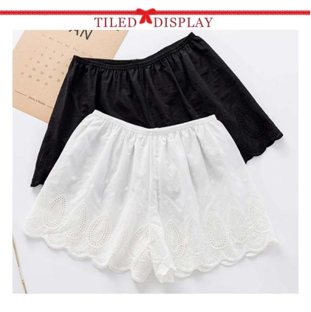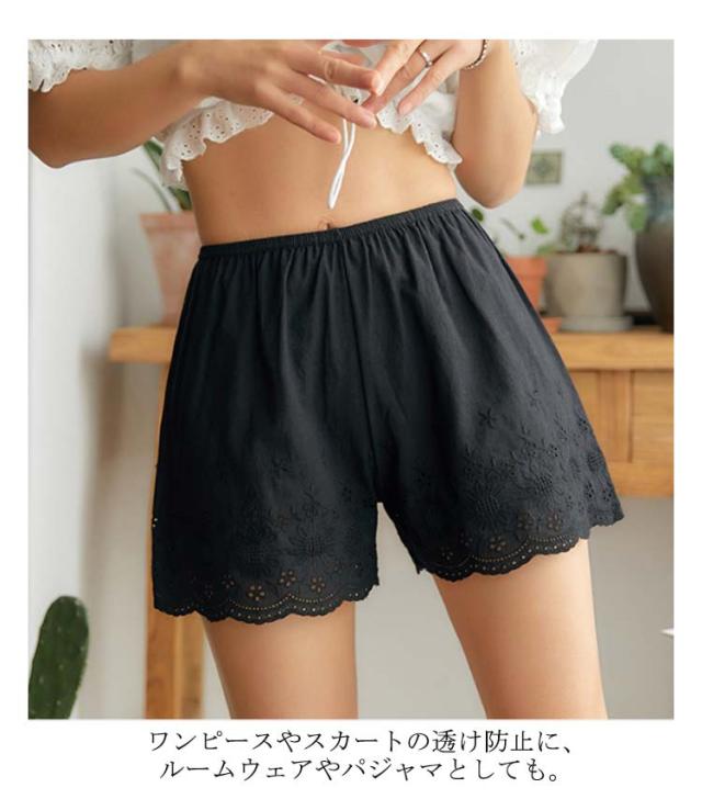 インナーパンツ ショート丈 ナチュラル 春 夏 ワンピース下 レディース ペチパンツ 綿 秋 コットン ゆったり 透け防止 ペチコート 白 黒 ゆったり かわいい 大きいサイズ 下着 裾 スカラップ 春