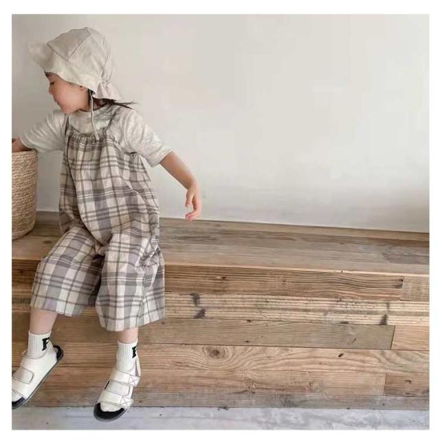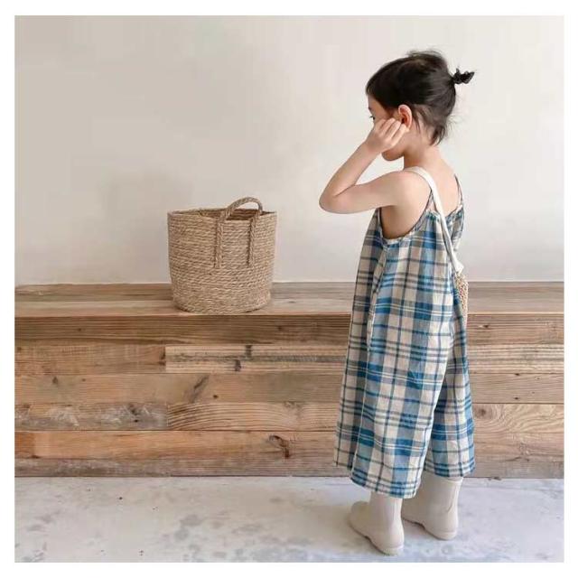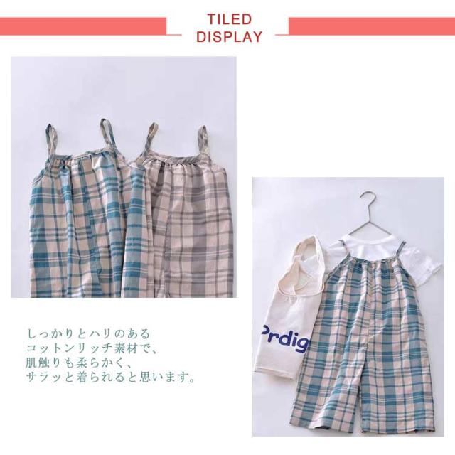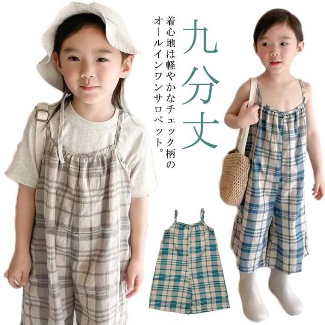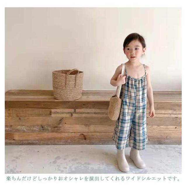 キッズ オールインワン 女の子 送料無料 重ね着 チェック 夏 ルーズ ロンパース キャミ サロペット 体型カバー オールインワン チェック 九分丈 ワイドパンツ ガウチョパンツ シンプル レイヤード 春 子供服