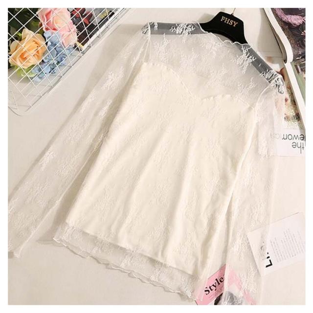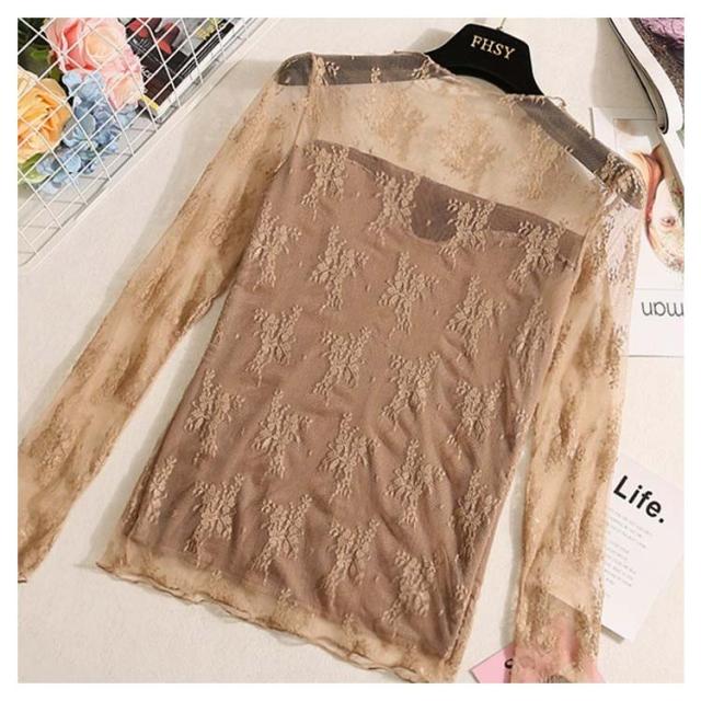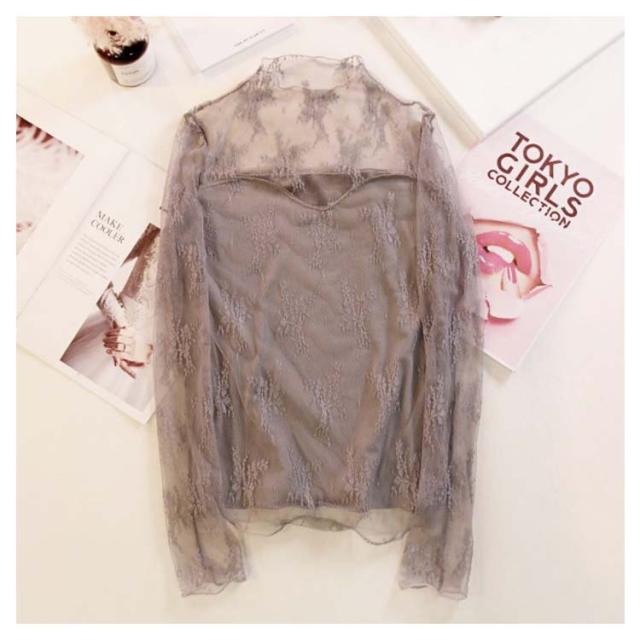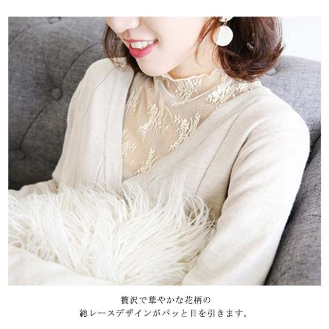 裏起毛 レースブラウス 長袖 レディース シャツブラウス 総レース 花柄レース 透け感 ハイネック フリル 裏ボア スケスケ セクシー シアーシャツ トップス インナー 重ね着 レイヤード お洒落 着痩せ