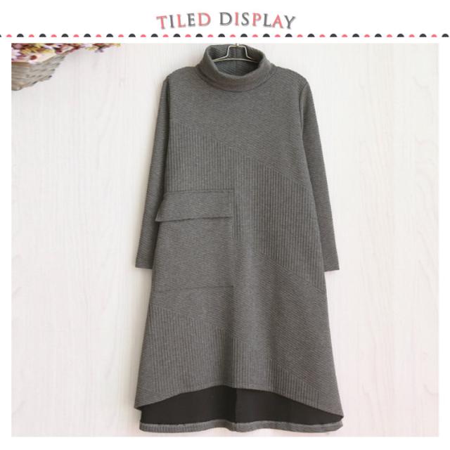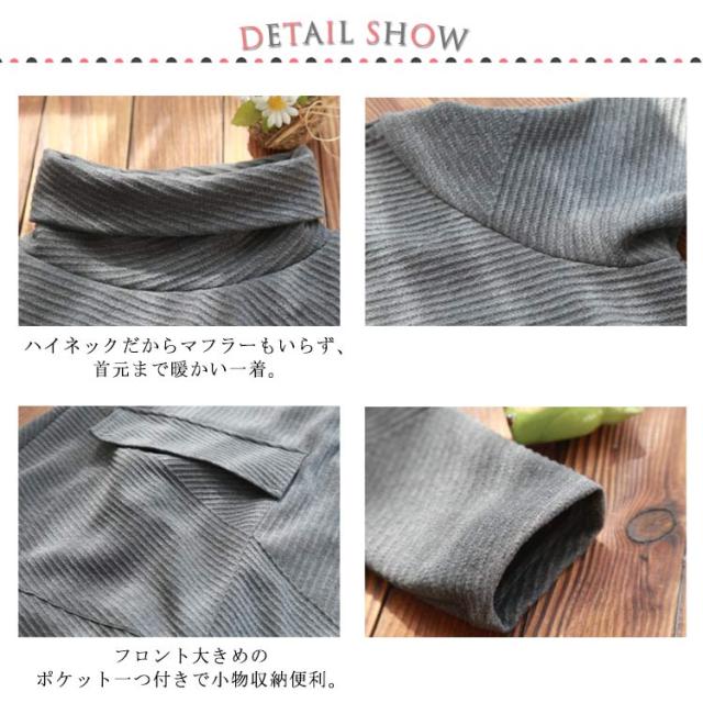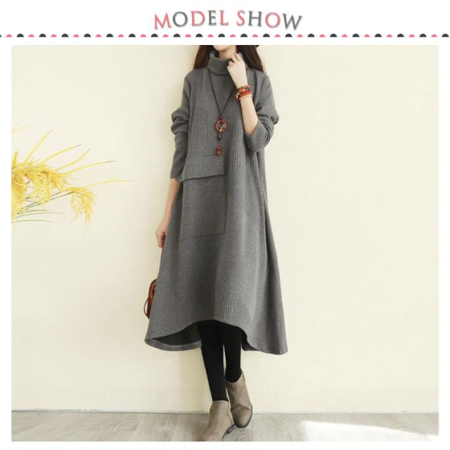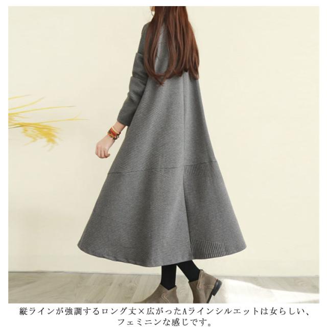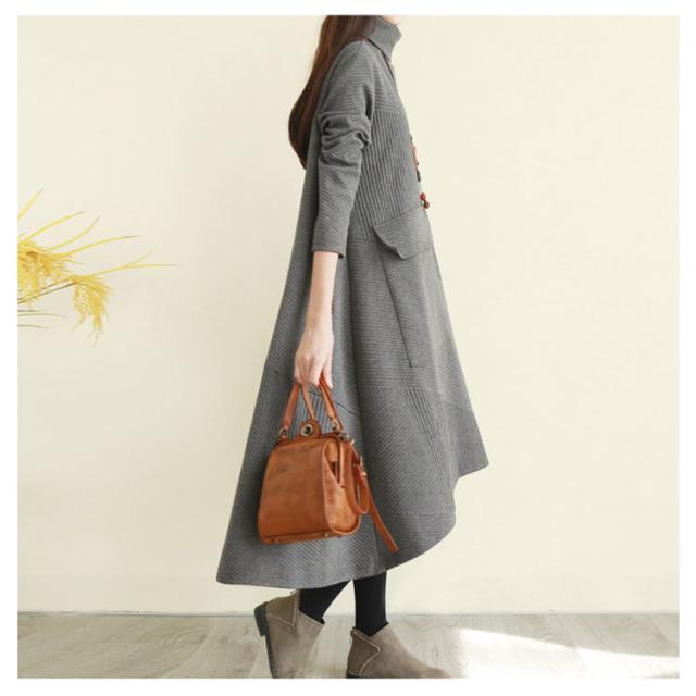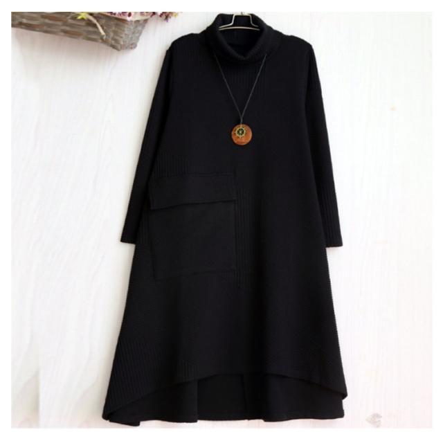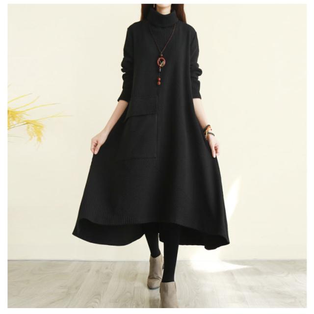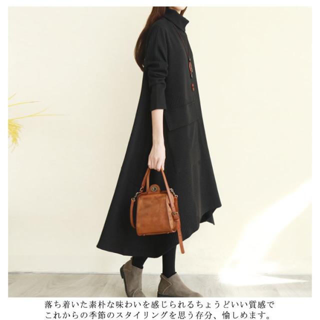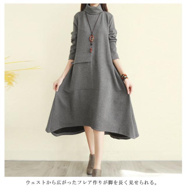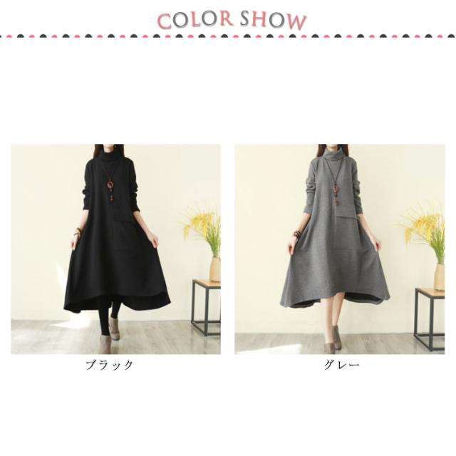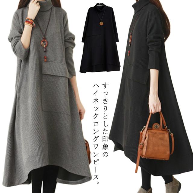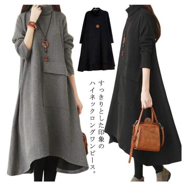ハイネックワンピース ワンピース 秋冬 長袖 ワンピ レディース 大きいサイズ ロングワンピース タートルネック Aライン 秋 厚手 ビッグシルエット 体型カバー 秋物 大人 シンプル 無地 ポケット付き ゆったり