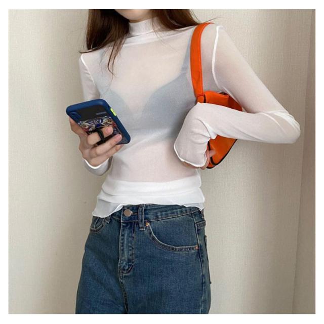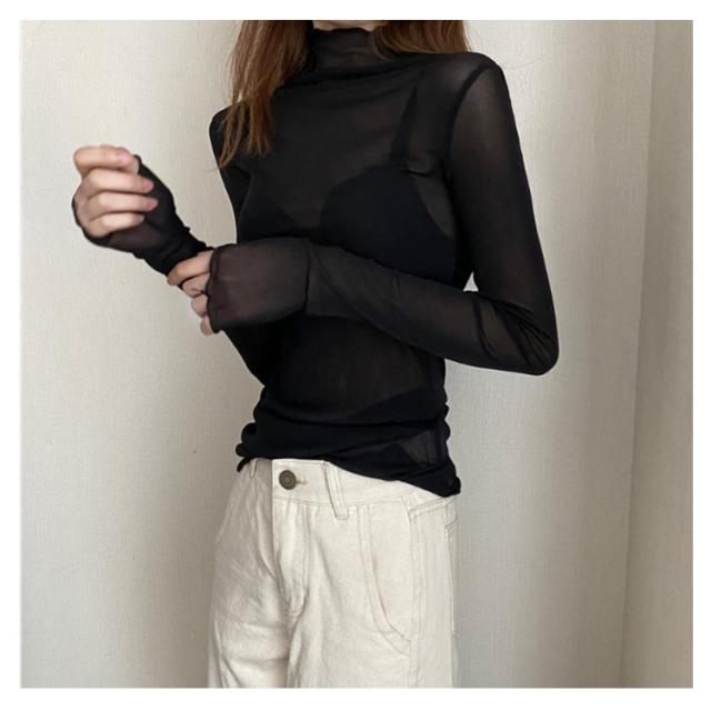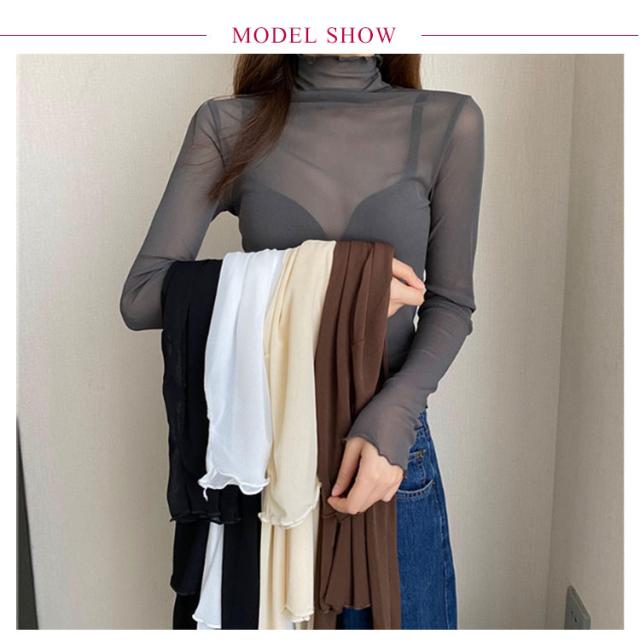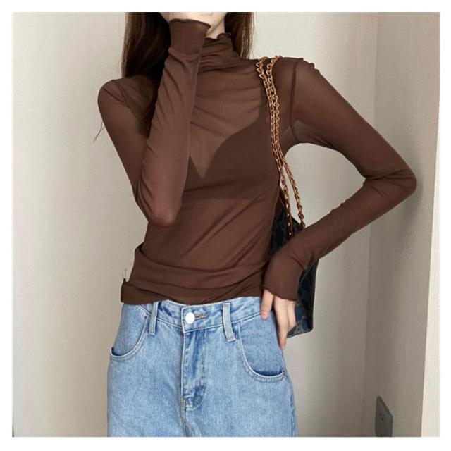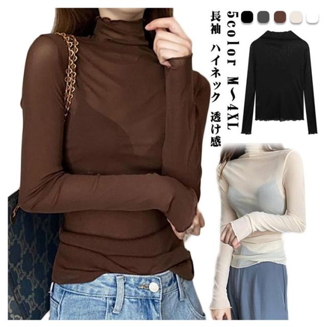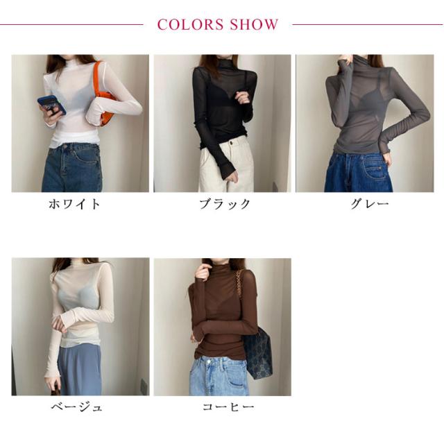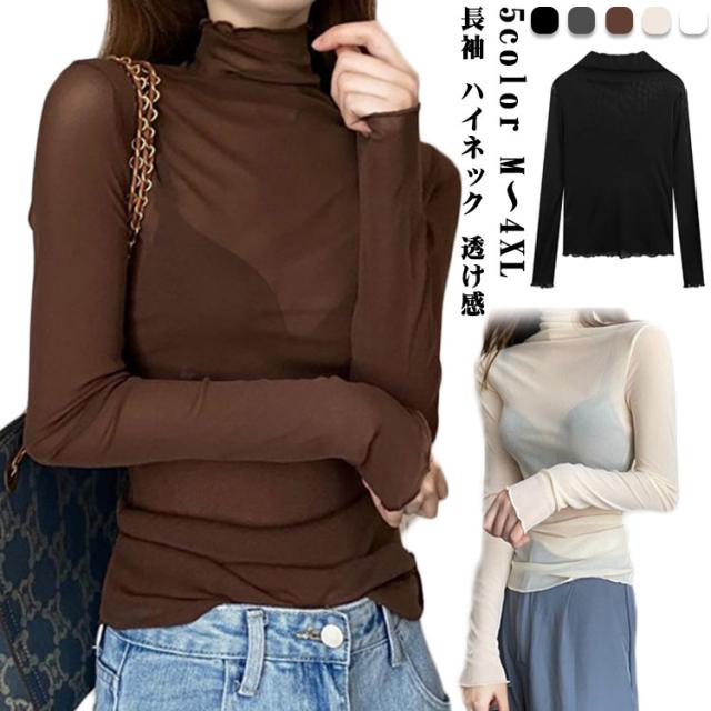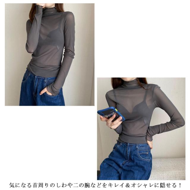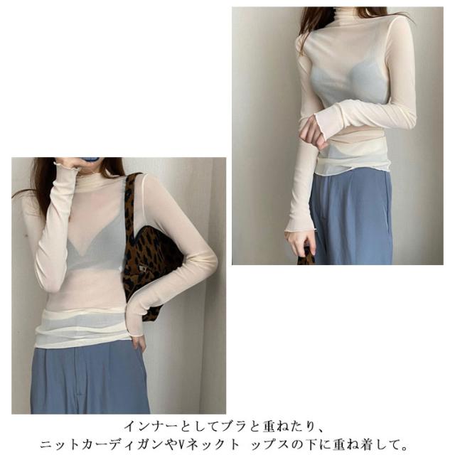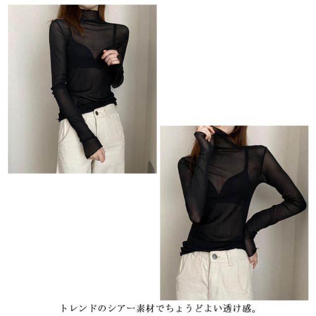 シースルー シャツ シアーカットソー ハイネック ハイネック 春 インナー シースルートップスカットソー 長袖 エレガント 透け感 薄手 トップス 大人可愛い トップス 送料無料 重ね着 秋冬 ママ 普段着 デイリー OL 通勤 オフィス