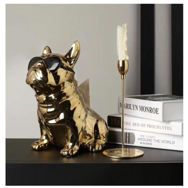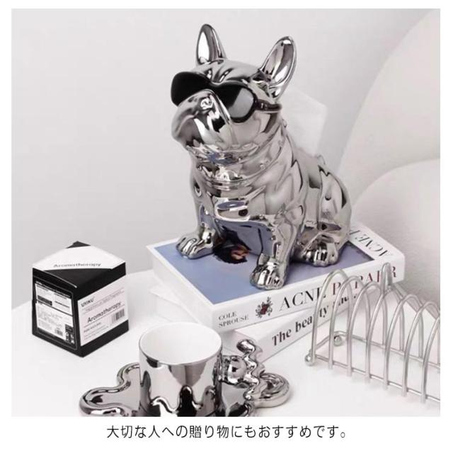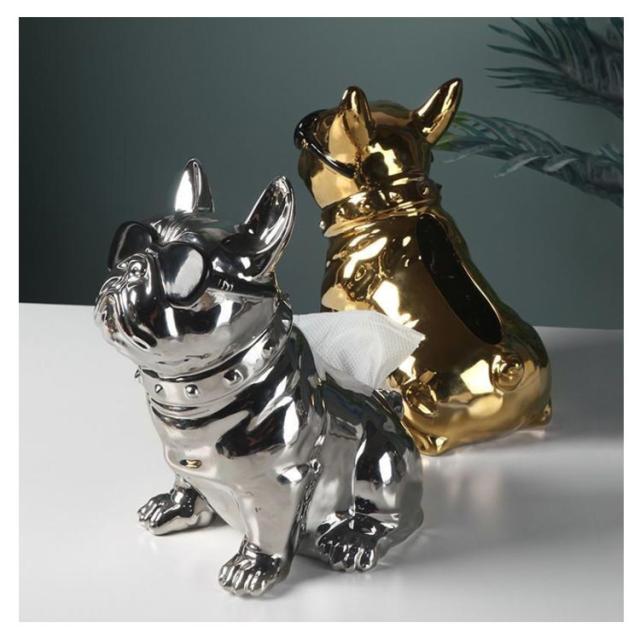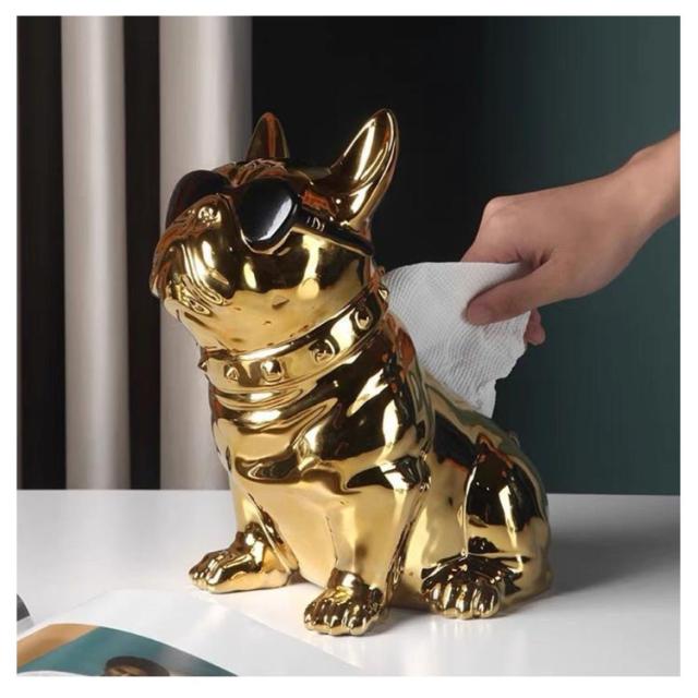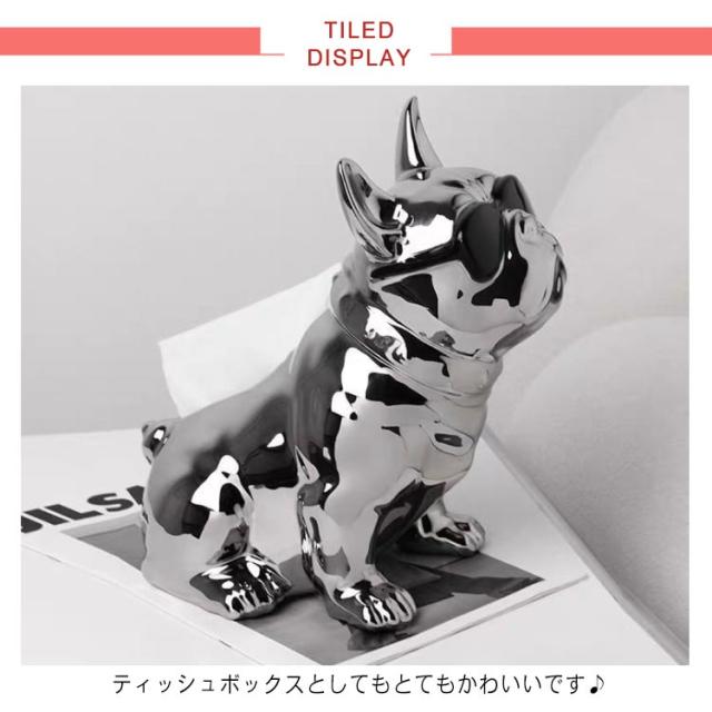 陶器 動物置物 メッキ おしゃれ リビング インテリア ティッシュボックス 犬 玄関 かわいい ティッシュケース ギフト プレゼント 贈り物 置物 北欧風 飾り物 雑貨 結婚祝い 引越し祝い 犬置物