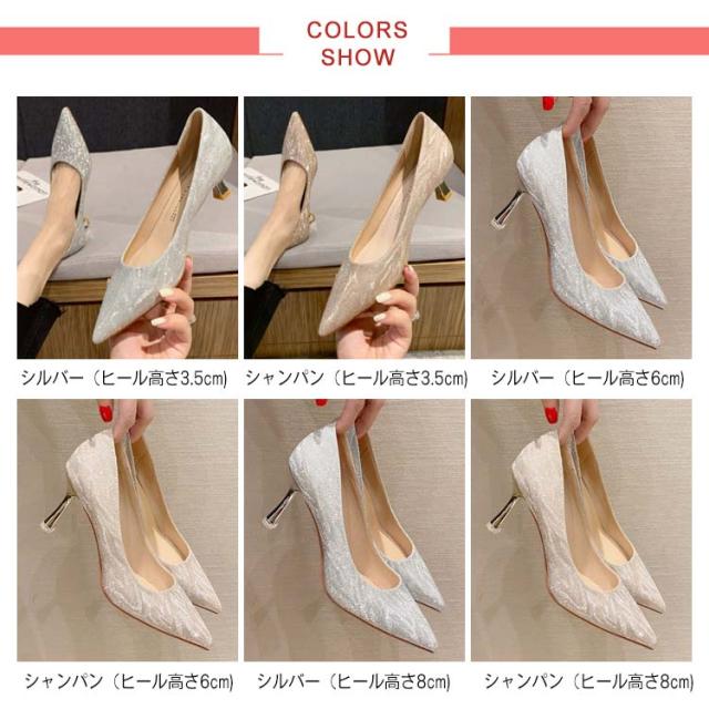 結婚式 3.5cm ポインテッドトゥ パンプス 小さいサイズ 8cm ゴールド キラキラ 6cm パンプス 歩きやすい 痛くない レディース 美脚 春夏 ラメグリッター 秋 二次会 シューズ 靴 シルバー ハイヒール