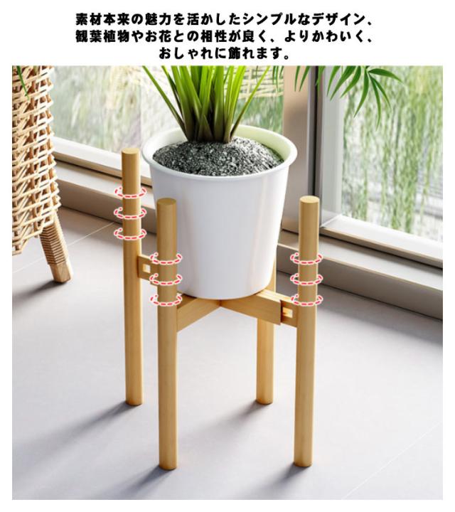 | 天然木を使ったこちらの鉢スタンドは、天然素材ならではの温かさが感じられます。素材本来の魅力を活かしたシンプルなデザイン、観葉植物やお花との相性が良く、よりかわいく、おしゃれに飾れます。 上下逆さまにするだけて、高さを簡単に変えられるので、背の高い植物は低く、背の高い植物は高くすることで、より柔軟に景観に合わせることができます。 簡単な組み立仕組みで、二本のシェルフをクロスしてスプライス、付属ネジで固定して完成です。 シンプルなデザインと使いやすさが、置く場所や用途を選ばないナチュラルテイストのインテリアとして、素敵な空間をつくります。 | |