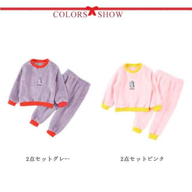 パジャマ 子ども服 上下セット ルームウェア 2点セット もこもこ 可愛い キャラクター 暖かい 秋冬 防寒 クルーネック トレーナー ロングパンツ ボアフリース プチプラ