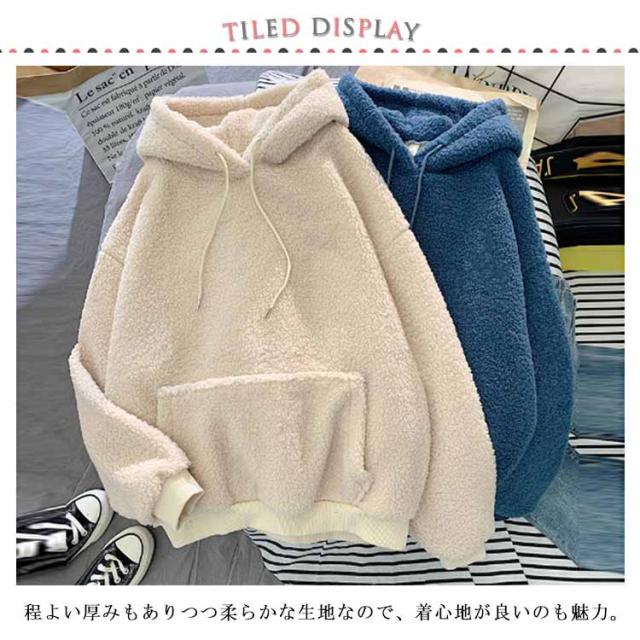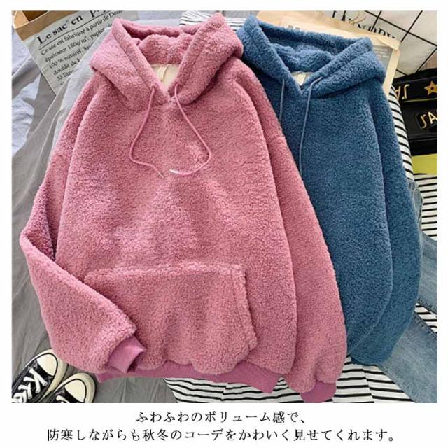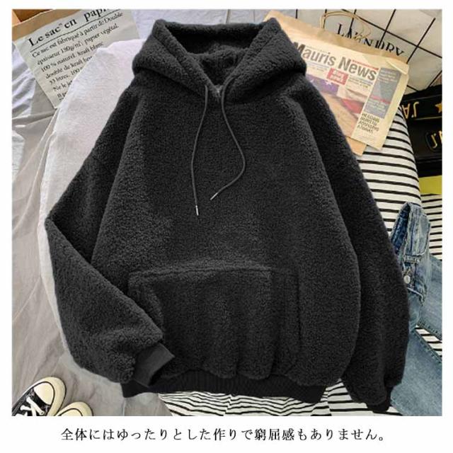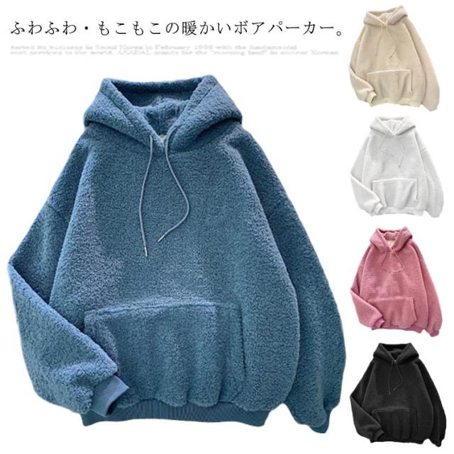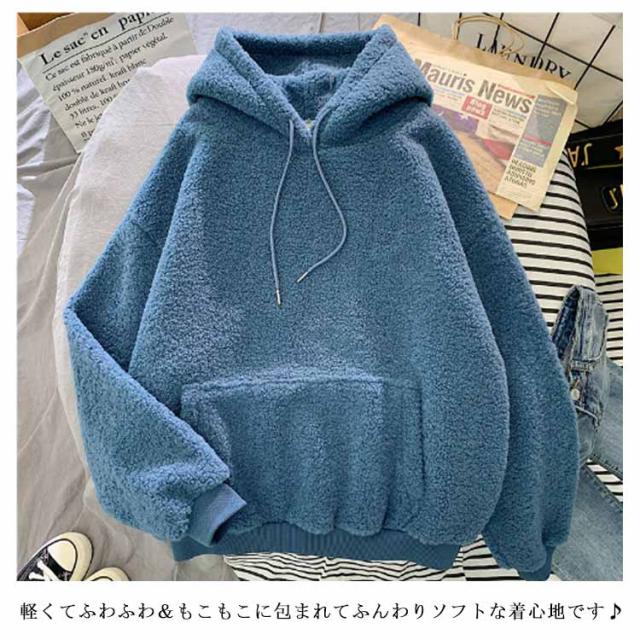 もこもこパーカー レディース パーカー プルオーバーパーカー ふわふわ もこもこ 秋冬 長袖 厚手 フード付き おしゃれ ゆったり 可愛い シンプル カジュアル 通学 通勤 トップス 新作
