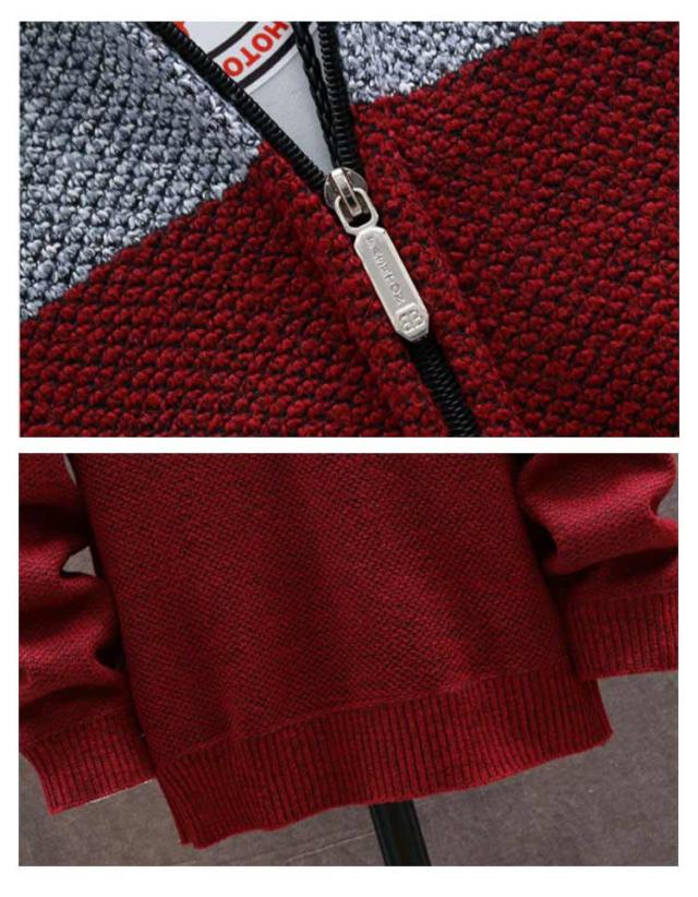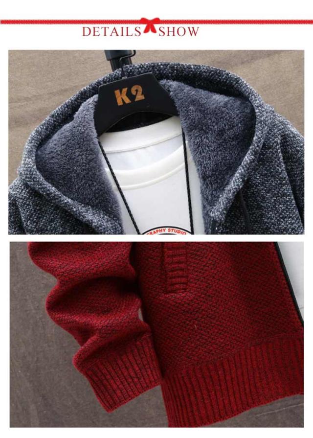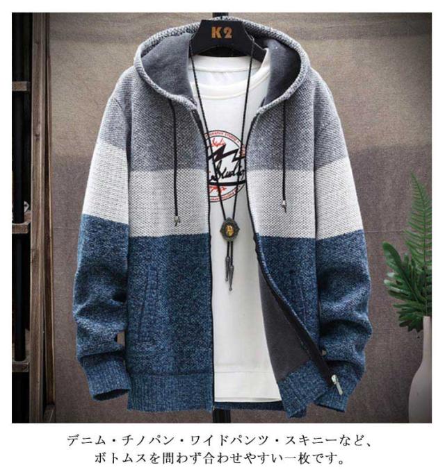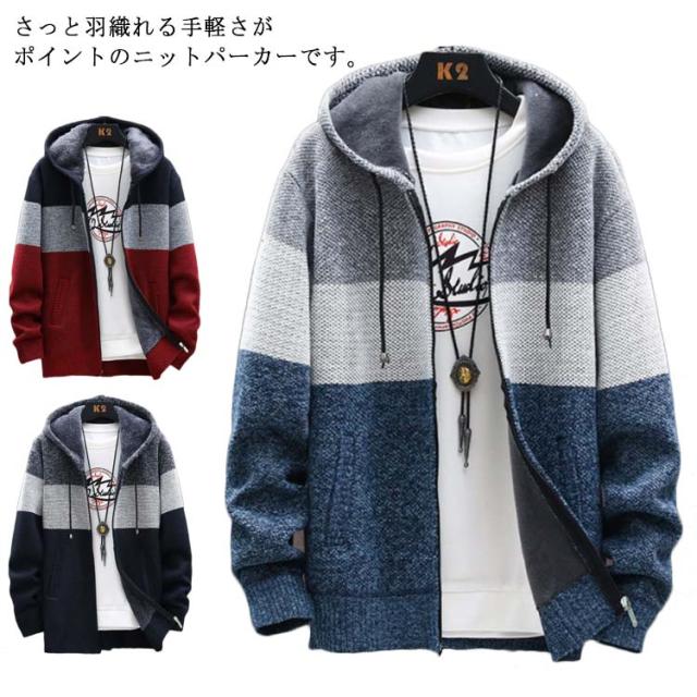 ニットパーカー ニットカーディガン メンズ ニットジャケット ニットコート 送料無料 冬 アウター 厚手 裏ボア 裏起毛 切替 配色 パーカー 長袖 フード付き ジップアップパーカー アウター 防寒 羽織り 秋服 冬服 秋冬