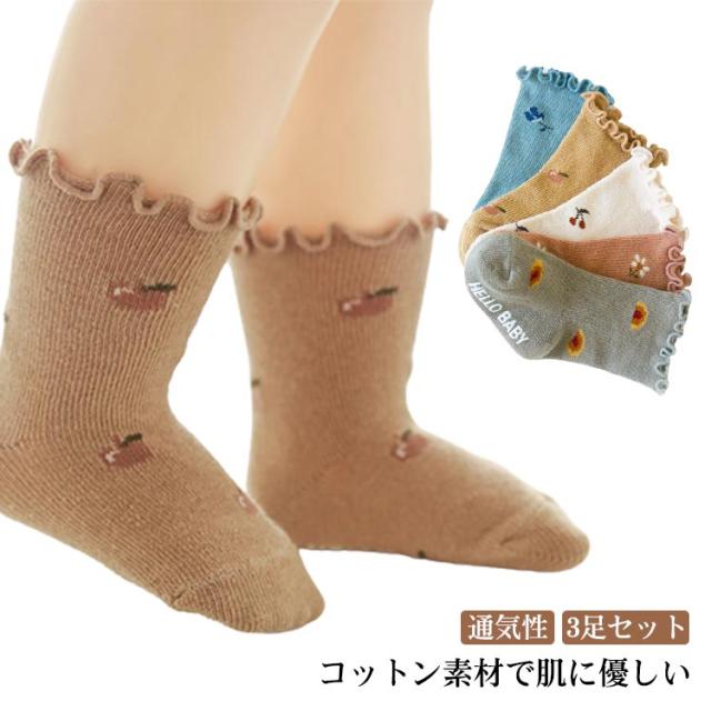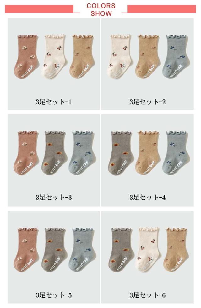 滑り止め付き 赤ちゃん 靴下 ソックス ベビー靴下 送料無料 女の子 キッズ 3足セット 新生児 幼稚園 子供用靴下 ソックス 幼児 ベビー用品 花柄 フリル コットン 通気性 かわいい 春 夏 秋 冬 ベビー