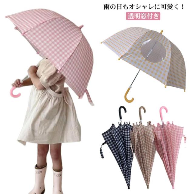 子供用 透明窓付き チェック柄 かわいい 女の子 キッズ プレゼント 雨傘 男の子 通学 小学生 子供傘 66cm 学生 小学校 中学校 傘 ギフト 丈夫
