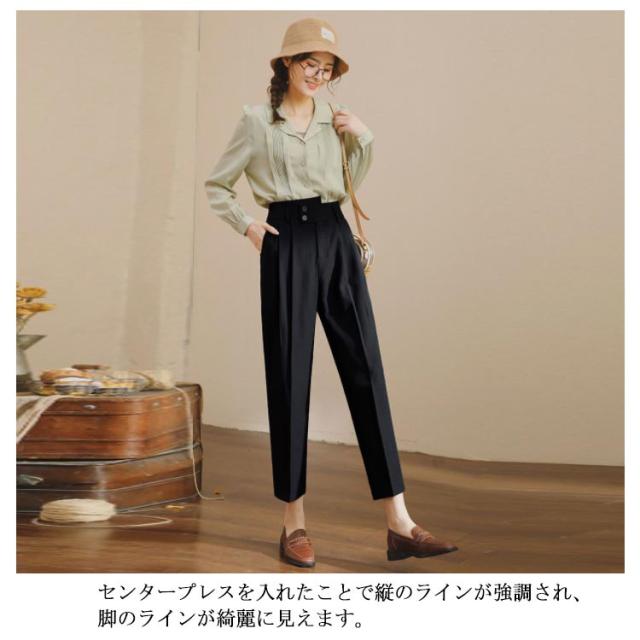 パンツ 九分丈 オフィス テーパードパンツ 春 大人 黒 ボトムス テーパード テーパードパンツ 送料無料 40代 シンプル センタープレス 春 スラックス 夏 ブラック 30代 きれいめ 50代 ママスーツ オフィスカジュアル オフィス レディース