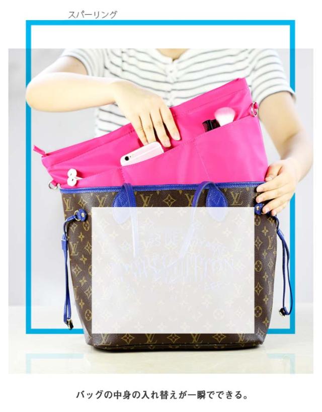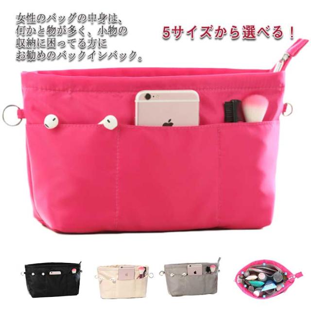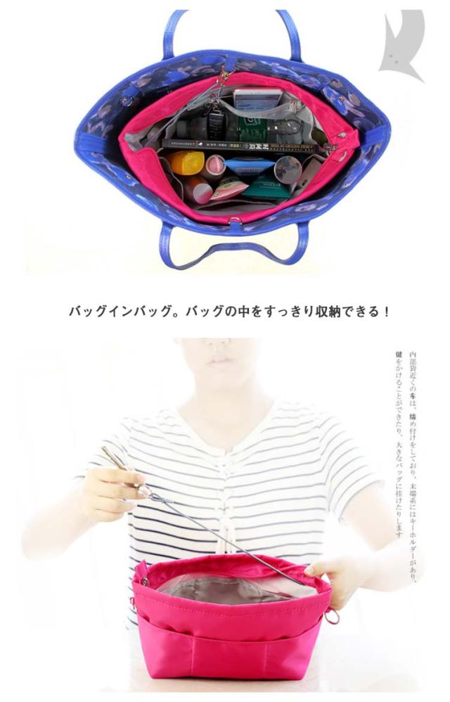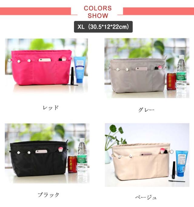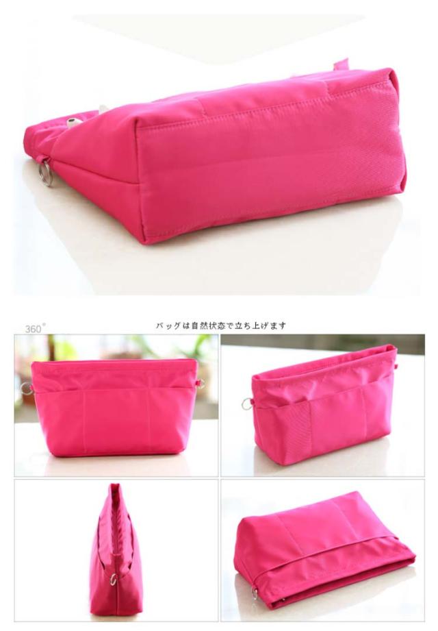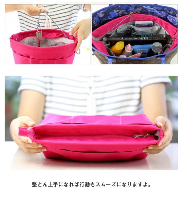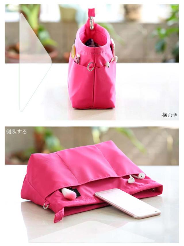 | 5サイズから選べる!女性のバッグの中身は、何かと物が多く、小物の収納に困ってる方にお勧めのバックインバック。 お使いのバッグをシャキッと自立させることができる。 バッグの中身の入れ替えが一瞬でできる。 整とん上手になれば行動もスムーズになりますよ。 バッグインバッグ。バッグの中をすっきり収納できる! | |