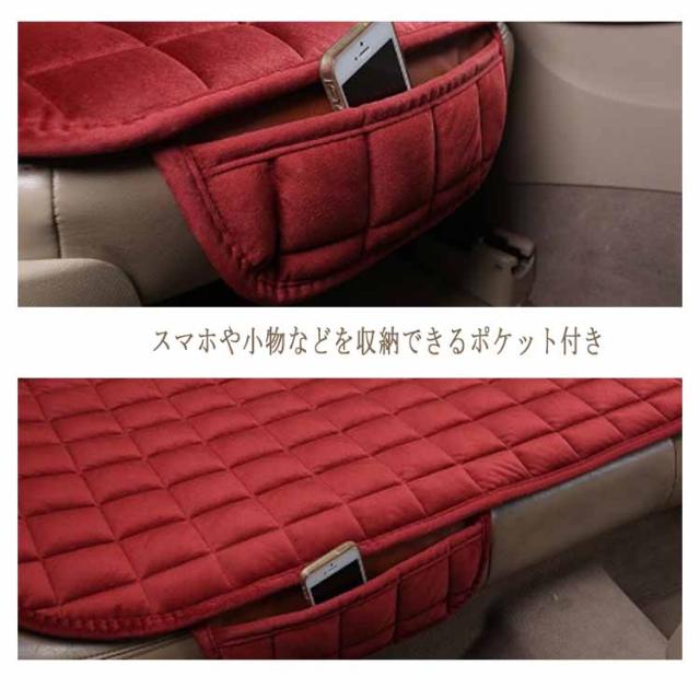 | なめらかソフトなタッチが心地いい♪ カーシートカバー3枚セット 表面が起毛した、やみつきになるような気持ちのいいなめらかな肌触りの生地です。 裏面には滑り止めが付いておりますのでズレにくくなっております。 中わた入りでふんわりした座り心地す。長時間の運転でも疲れにくいです。 スマホや小物などを収納できるポケット付き | |