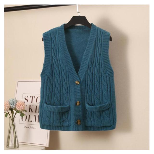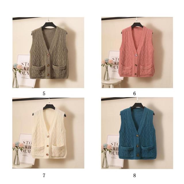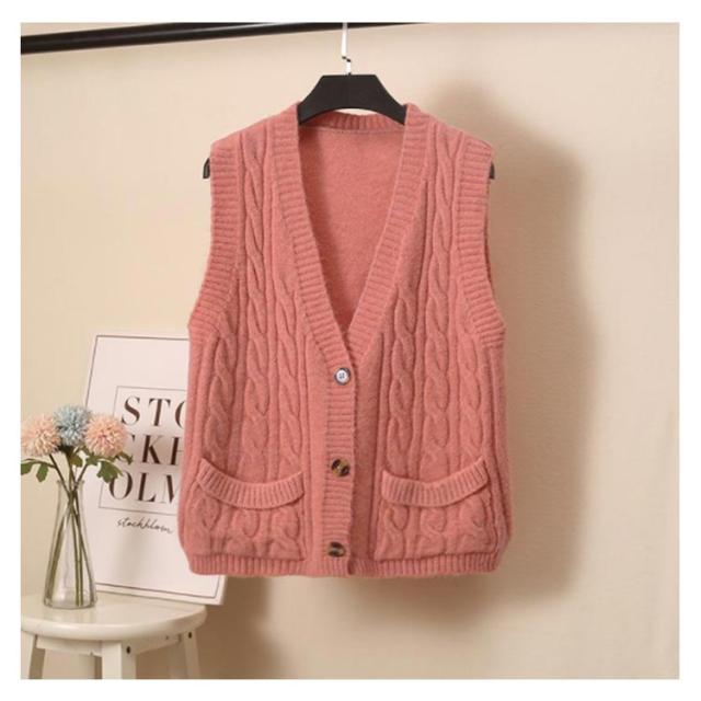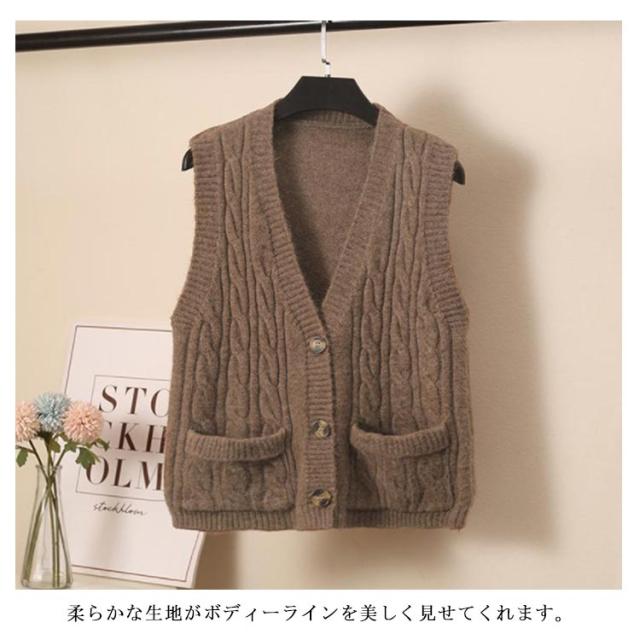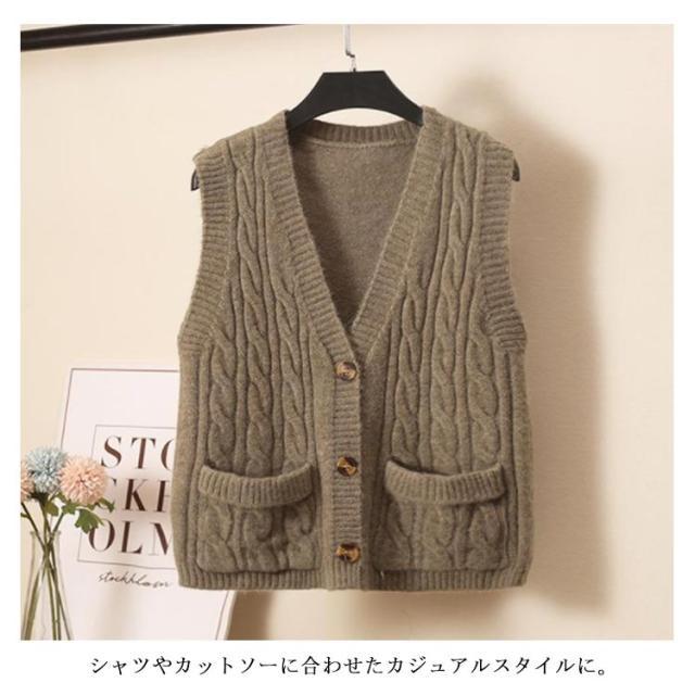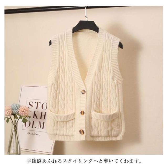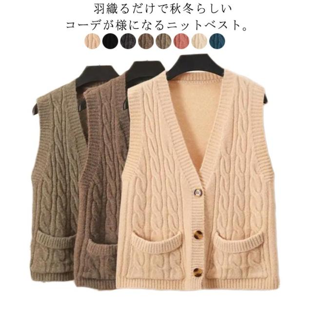 ニットベスト レディース ケーブル編み ベスト ニット Vネック ノースリーブ 前開き ベスト ショート丈 カジュアル ゆったり 秋冬 送料無料