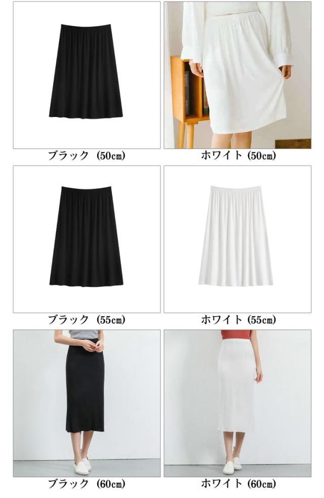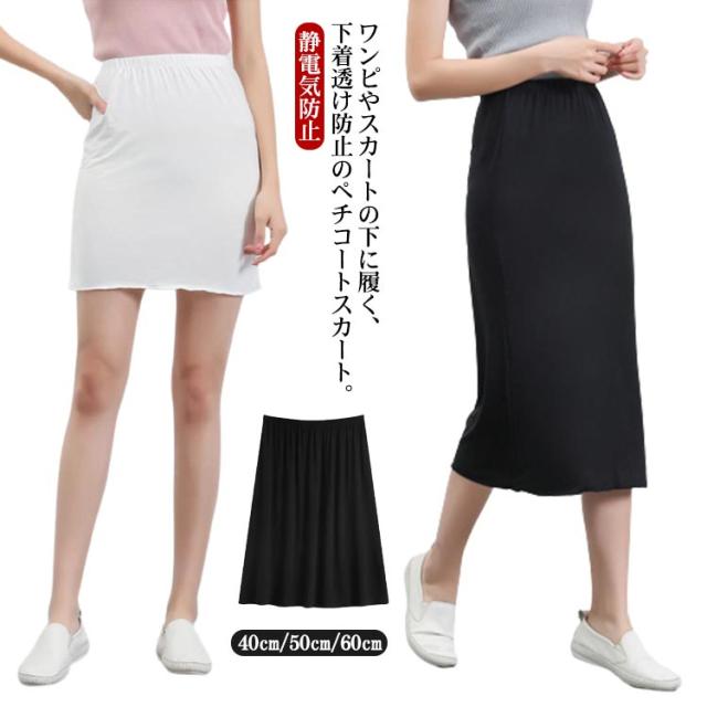 レディース ペチスカート インナー ミモレ丈 40cm/50cm/60cm ペチコート 膝丈 下着透け対策 スカート 透け防止 スカート おしゃれ 白 かわいい 無地 シンプル ゴムウエスト 黒 大きいサイズ 静電気防止 膝下丈