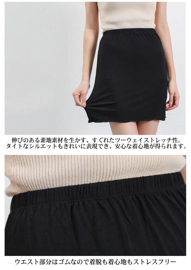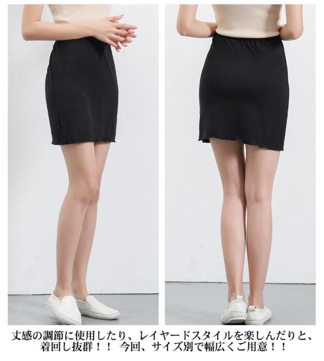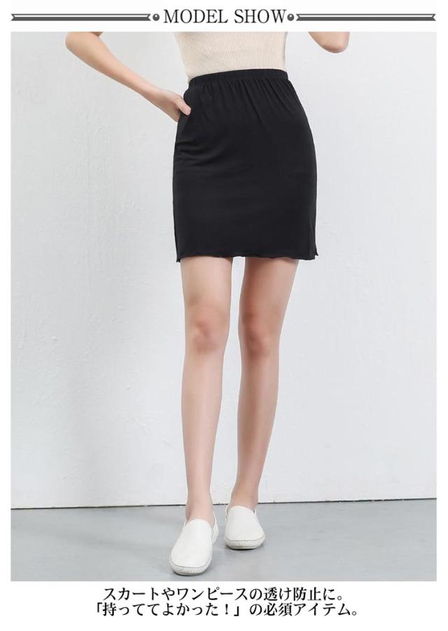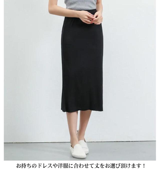 | ワンピやスカートの下に履く、下着透け防止のペチコートスカート。 スカートやワンピースの透け防止に。「持っててよかった!」の必須アイテム。 ウエスト部分はゴムなので着脱も着心地もストレスフリー 伸びのある素地素材を生かす、すぐれたツーウェイストレッチ性。タイトなシルエットもきれいに表現でき、安心な着心地が得られます。 丈感の調節に使用したり、レイヤードスタイルを楽しんだりと、着回し抜群!! 今回、サイズ別で幅広くご用意!!お持ちのドレスや洋服に合わせて丈をお選び頂けます! | |