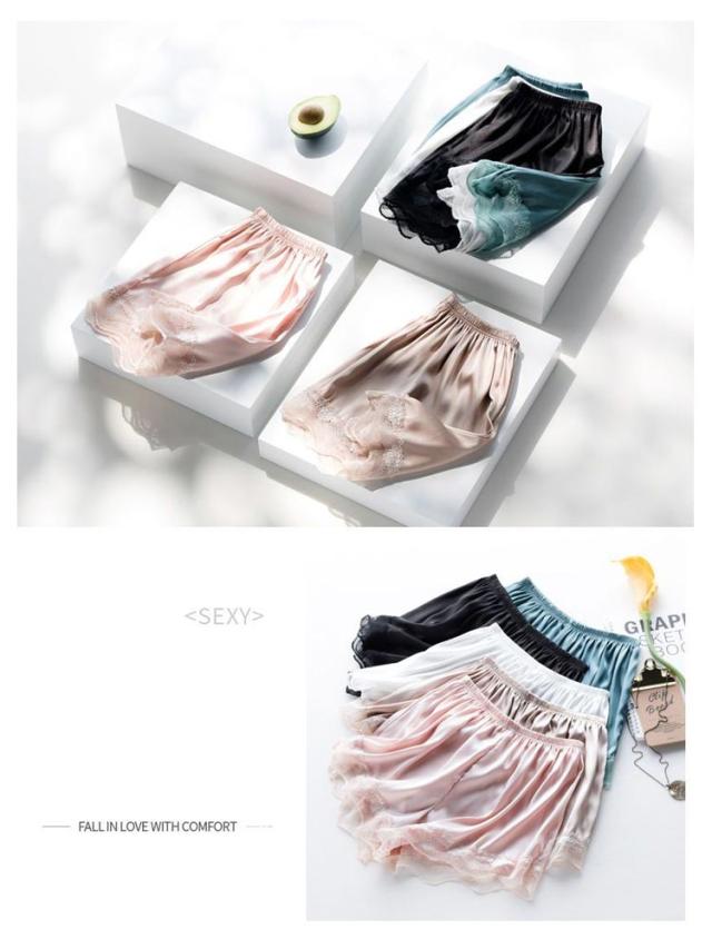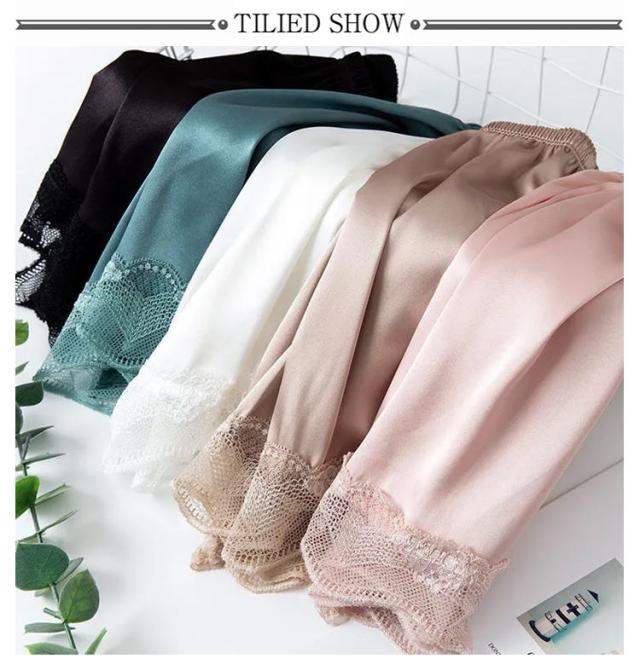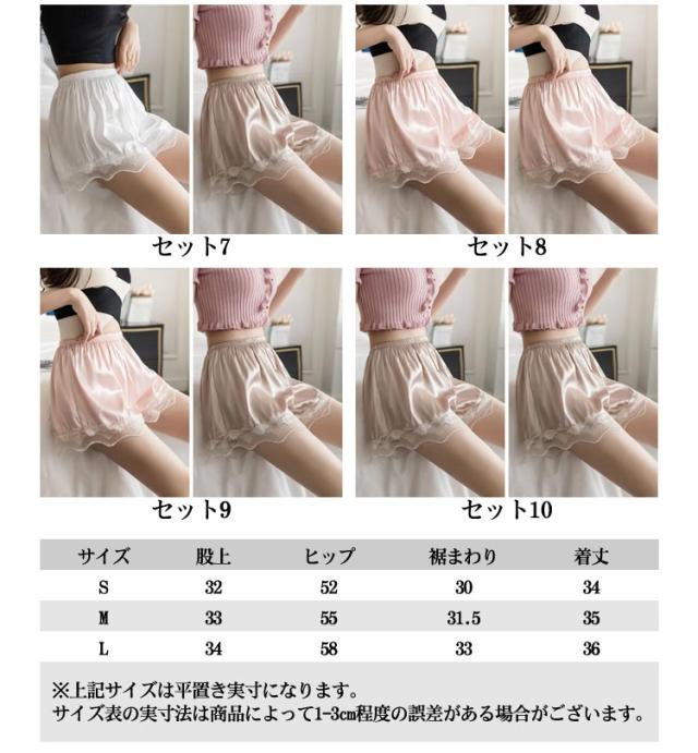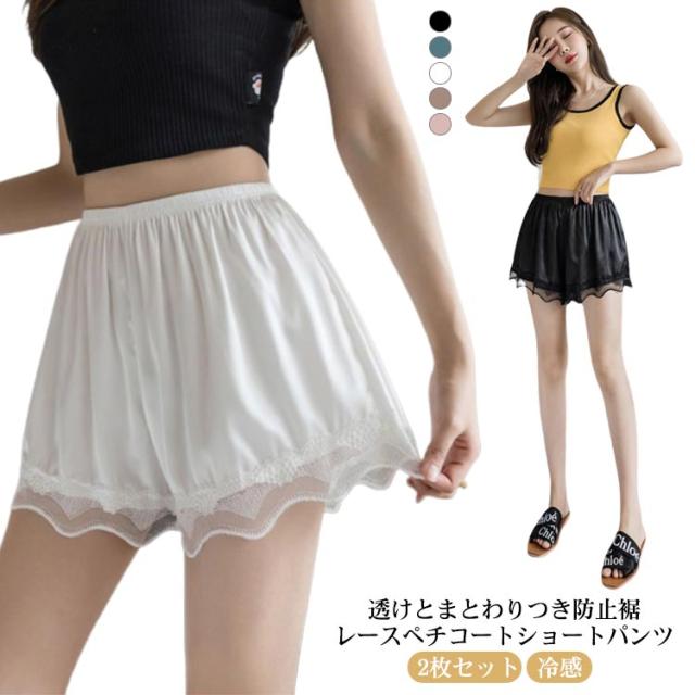 サテン 透け防止 インナーパンツ ショート ペチパンツ 膝上 冷感 レディース ペチコート ショートパンツ パンツ ルームウエア 裾レース レース シンプル ブラウン 大きいサイズ ナチュラル 白 黒 ピンク 2枚セット