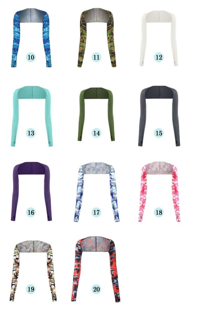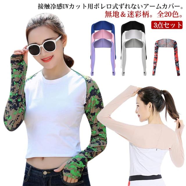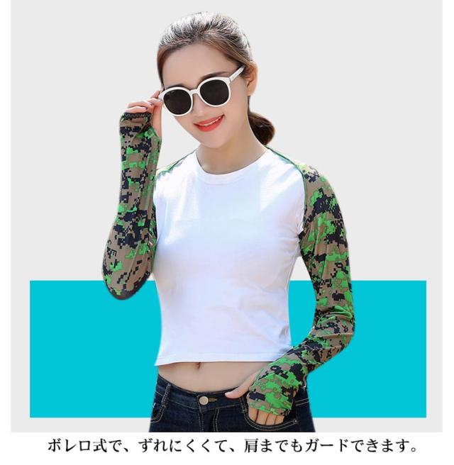 | 接触冷感UVカット用ボレロ式ずれないアームカバー。無地&迷彩柄。全20色。【3点セット】 アウトドアでUVカットや紫外線対策のインナーウェアは必要です。 長袖ゴルフブシャツが涼感やひんやり冷感があります。 スポーツ用生地を採用し、自然に柔らかくて、肌触りが良い。 ストレッチあり、通気速乾シャツで、抜群のフィット感!夏に欠かせない。 ボレロ式で、ずれにくくて、肩までもガードできます 指穴付き、手の甲までカバーして、巻きあがりはしません | |