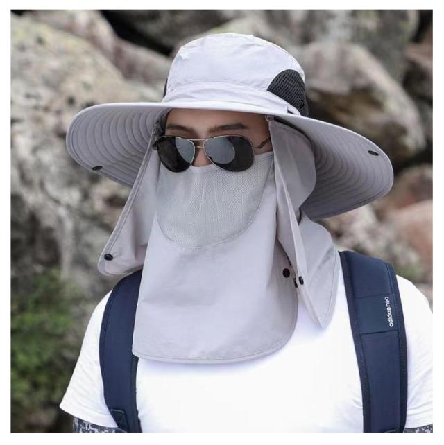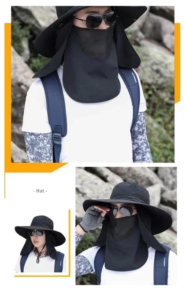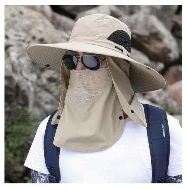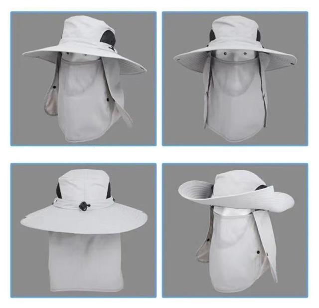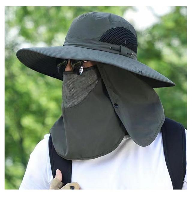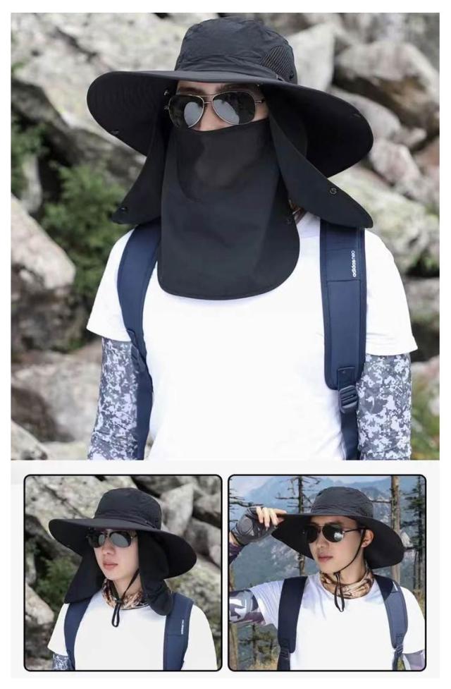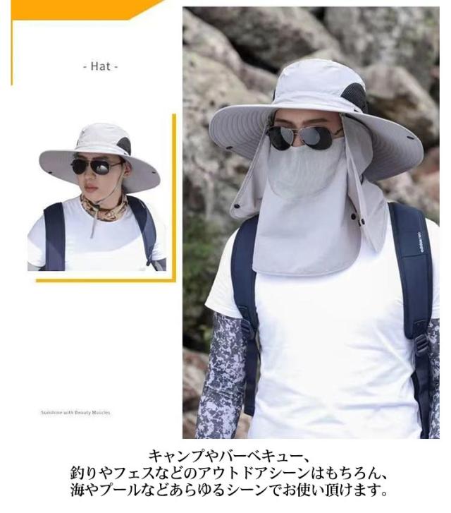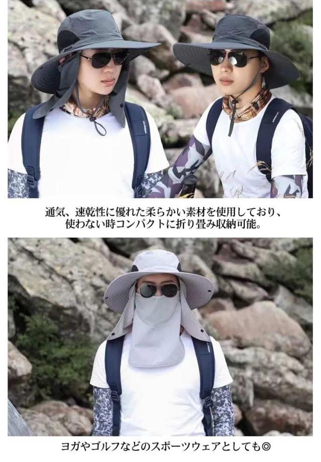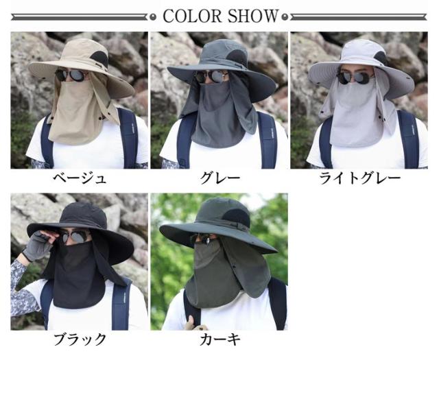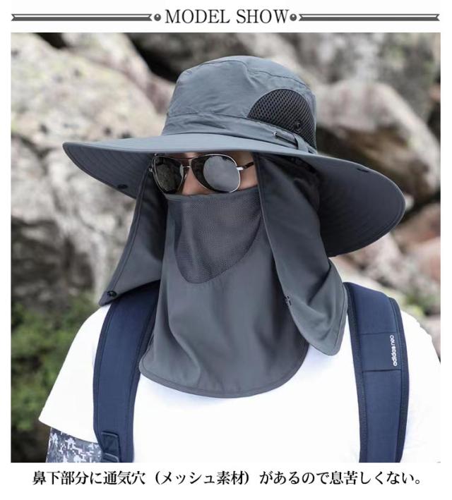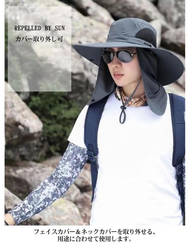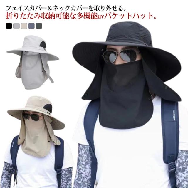 3way ハット つば有り バケットハット アドベンチャーハット 農業 UVカット 紫外線対策 日焼け防止 日よけ サファリハット 撥水 帽子 男性用 フェイスカバー付き 360度ガード 首ガード あご紐付き カバー取り外し可 アウトドア 園芸 メンズ