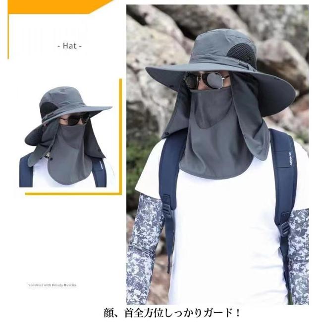 | フェイスカバー&ネックカバーを取り外せる。折りたたみ収納可能な多機能uvバケットハット。 鼻下部分に通気穴(メッシュ素材)があるので息苦しくない。 顔、首全方位しっかりガード! フェイスカバー&ネックカバーを取り外せる、用途に合わせて使用します。 通気、速乾性に優れた柔らかい素材を使用しており、使わない時コンパクトに折り畳み収納可能。 キャンプやバーベキュー、釣りやフェスなどのアウトドアシーンはもちろん、海やプールなどあらゆるシーンでお使い頂けます。 ヨガやゴルフなどのスポーツウェアとしても◎ | |