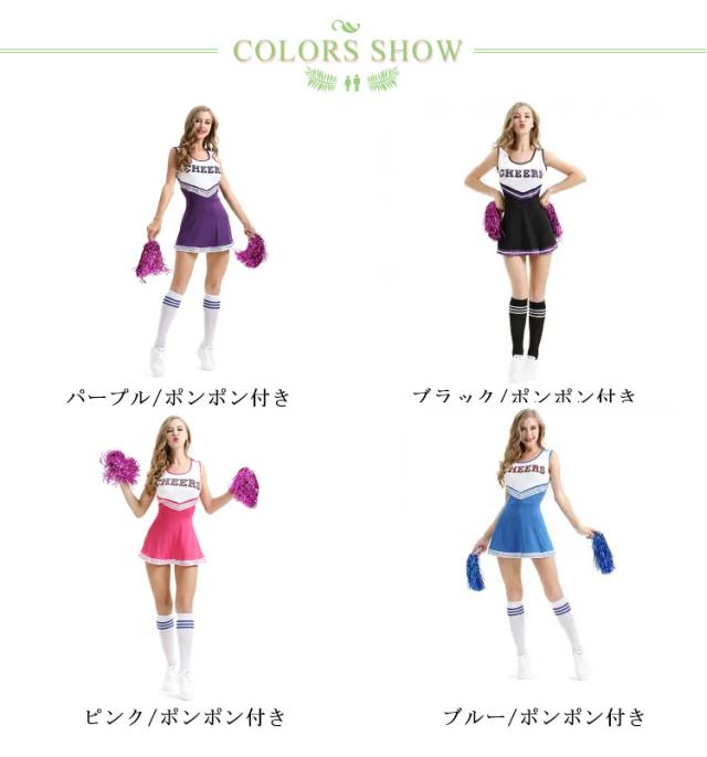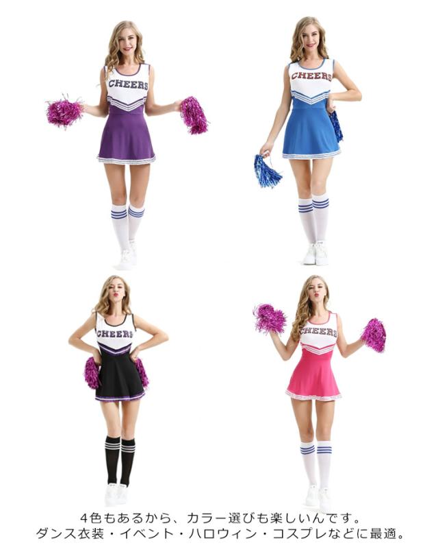 チアダンス ワンピース チアガール コスプレ衣装 衣装 チアリーディング ポンポン付き 応援 体操服 チアリーダー 送料無料 ダンスウェア ダンス衣装 ポンポン付き ユニフォーム 可愛い コスチューム ハロウィン チアガール衣装